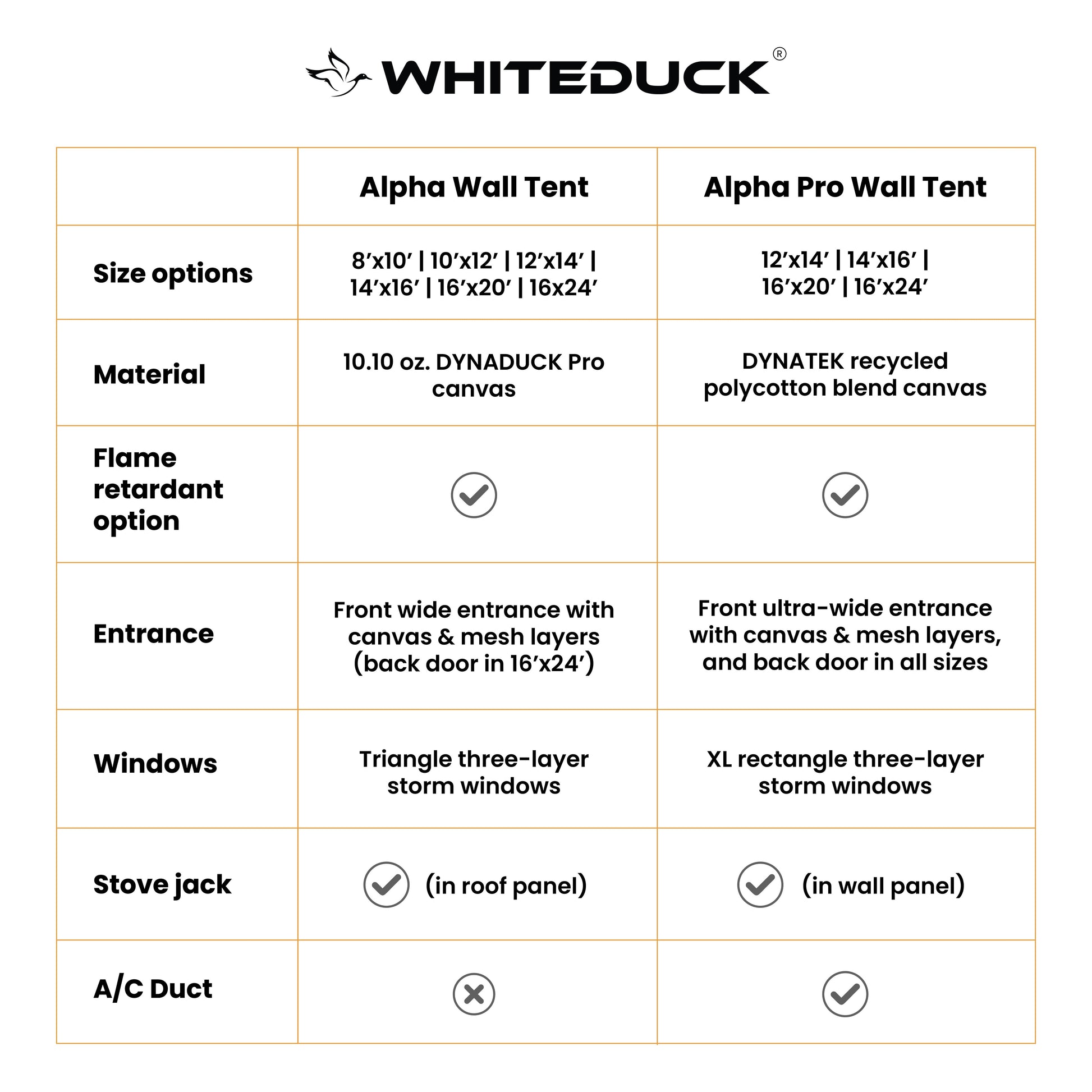 The Alpha PRO Wall Tent arrives outdoors ready, with the poles, angle kits, frame, floor and tool kit included with your purchase. It’s the last wall tent you will ever buy.