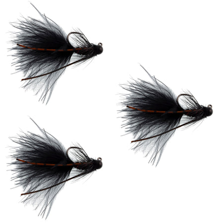 3 Pack Tungsten Bead Tactical Black Mini Bugger Czech Nymph Euro Nymphing Fly - 3 Flies Size 12