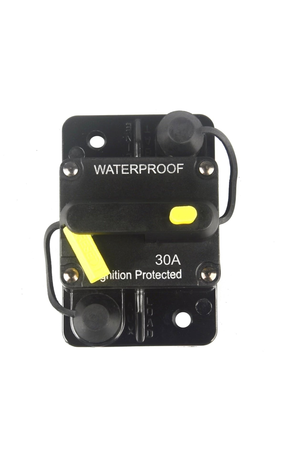 30A waterproof ignition protected circuit breaker with trip button. Great for electronics!