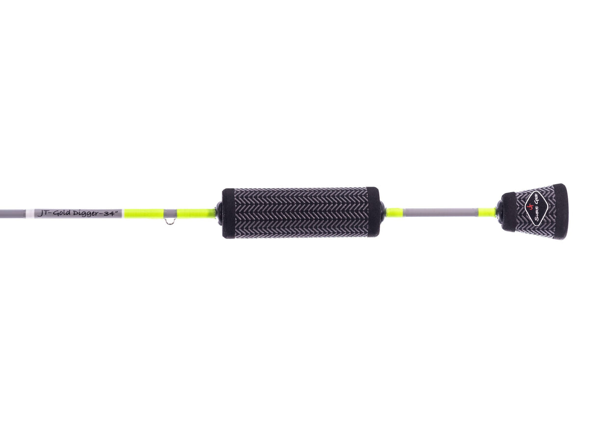 Same great Gold Digger, slightly longer blank. Added length for the out-of-the-shack fisherman can sometimes add just enough extra cushion for those bigger fish. This classic covers a wide variety of techniques to guarantee a spot in your lineup. The medium-light, extra fast action, solid carbon fiber blank was designed to keep any caliber walleye pinned. Assembled with cold weather (-30 rated) rebounding titanium guides, and a split grip handle in either cork or Sure Grip