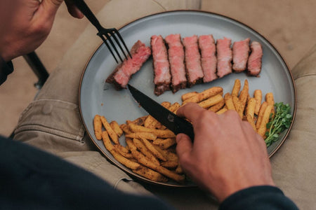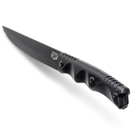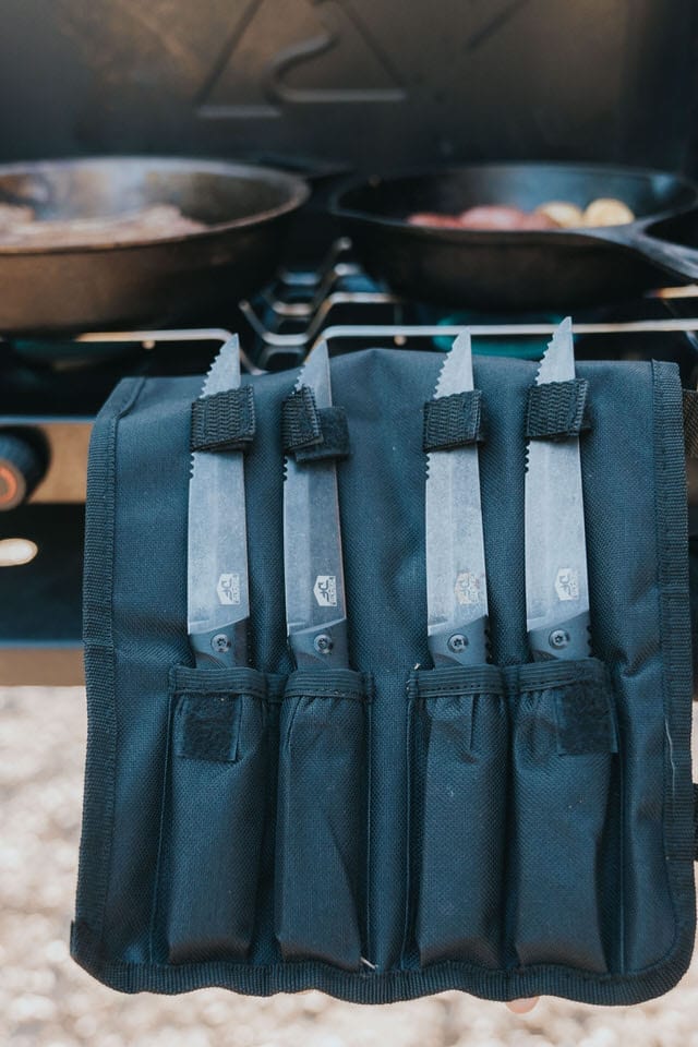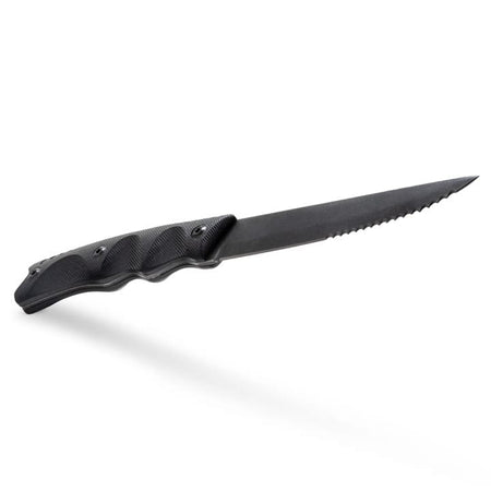 The tactical steak knife set features 4 – 4.5” half-serrated steak knives designed to slice through thick or tough proteins with ease. It’s a great culinary tool to redefine fine dining in a kitchen or outdoors.