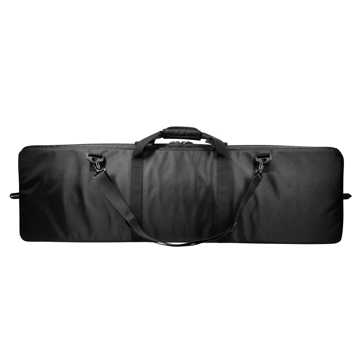 Whether you're logging time in at the range or going on an outdoor adventure, it's time to gear up with the EVOLUTION TACTICAL line. The 42" TACTICAL DOUBLE RIFLE CASE is loaded with premium padding, functionality and superb durability. Made of durable 1680D fabric, not only does this tactical rifle case look fantastic but is truly heavy duty and will last for years. You'll love the functionality and features loaded into this premium double rifle case. Equipped with heavy gauge foam padding, this TACTICAL DOUBLE RIFLE CASE offers maximum impact resistance to protect your firearm from damage and is designed with hook and loop tie down straps to secure your firearm. It also has a large hook and loop front panel for plenty of patches. This tactical case is loaded with great features which include 3 zippered pockets on front, paracord zipper pulls, MOLLE webbing on front, and an adjustable, removable shoulder strap. It also has a padded partition to secure and protect 2 guns. The Double Rifle Case dimensions are 42" x 12.5" x 6" inches. With premium functionality and features, this will be your "go to" tactical gun case to transport and carry your firearm for your range days or outdoor adventures.