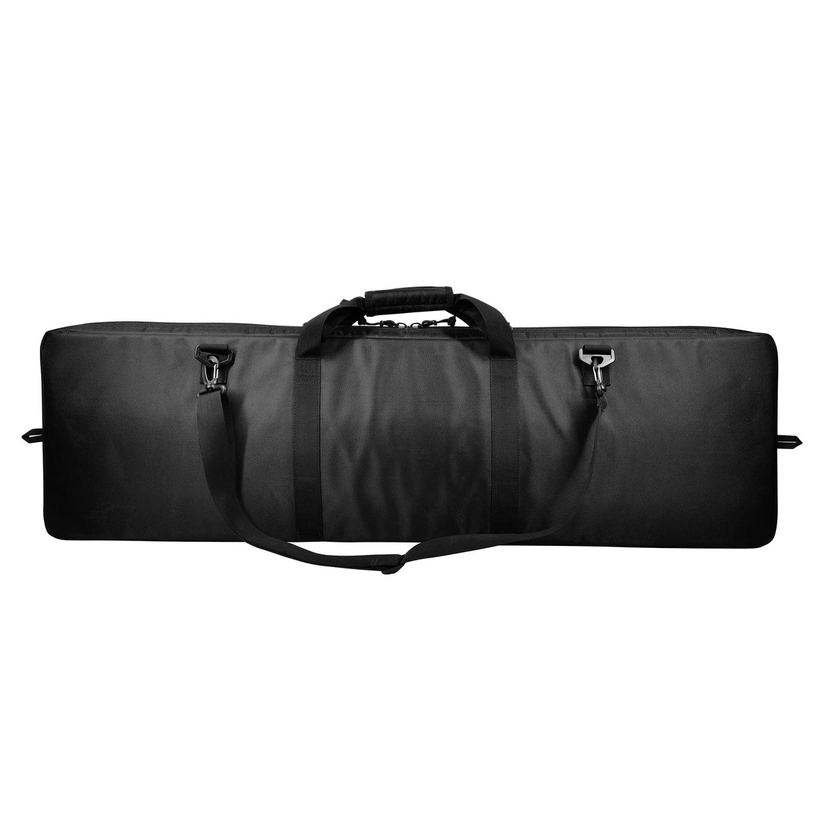 Whether you're logging time in at the range or going on an outdoor adventure, it's time to gear up with the EVOLUTION TACTICAL line. The 42" TACTICAL RIFLE CASE is loaded with premium padding, functionality and superb durability. Made of durable 1680D fabric, not only does this tactical rifle case look fantastic but is truly heavy duty and will last for years. You'll love the functionality and features loaded into this premium rifle case. Equipped with heavy gauge foam padding, this TACTICAL RIFLE CASE offers maximum impact resistance to protect your firearm from damage. This premium tactical rifle case is designed with hook and loop tie down straps to secure your firearm. It also has a large hook and loop front panel for plenty of patches. This case is designed with great features which include 3 zippered pockets on front, paracord zipper pulls, MOLLE webbing on front, and an adjustable, removable shoulder strap. Dimensions are : 42" x12.5" x 4.5" inches. With premium functionality and features, this will be your "go to" tactical gun case to transport and carry your firearm for your range days or outdoor adventures.