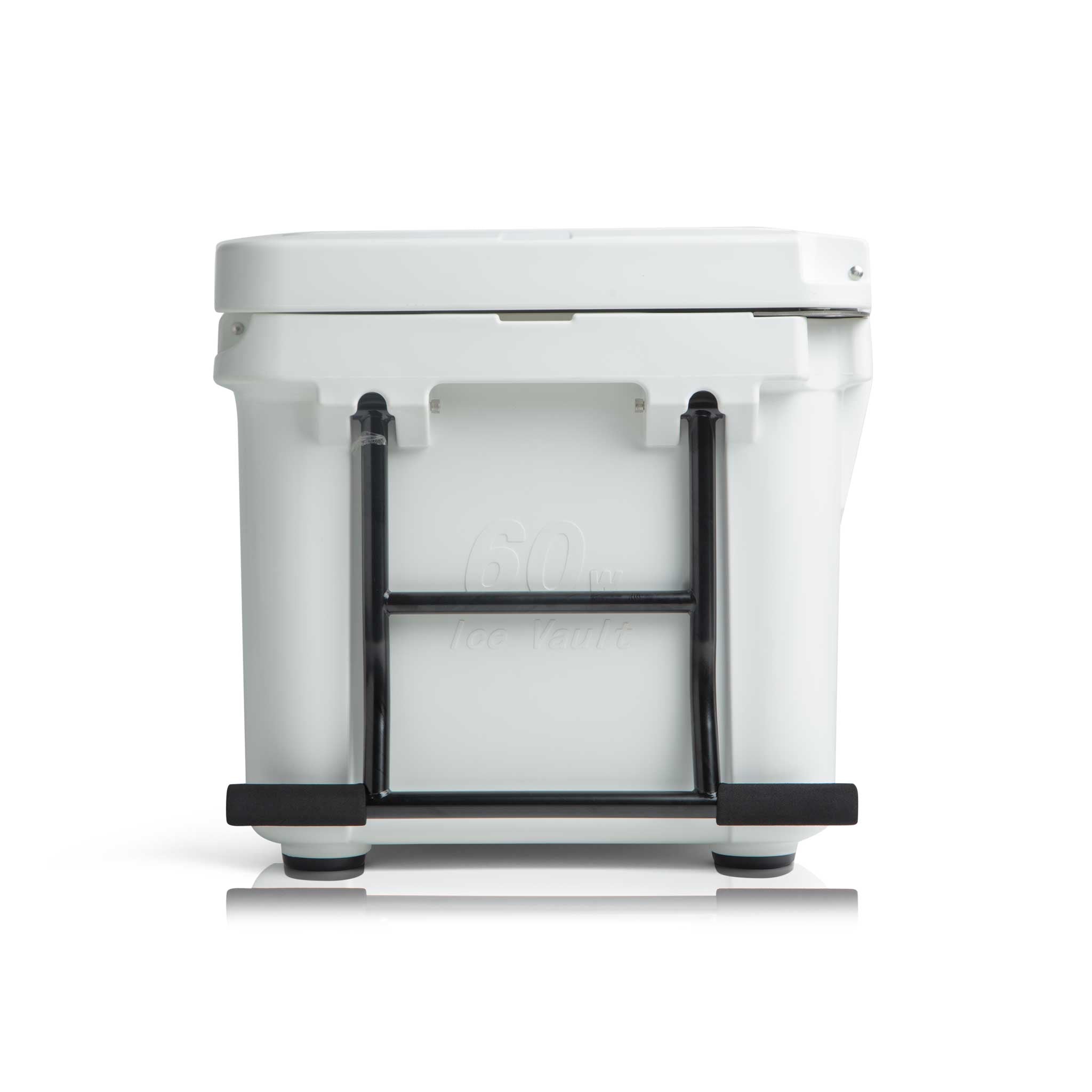 We have added a rugged all-terrain wheel set and easy transport handle to our 60 Quart Ice Vault cooler. This Wheeled 60 Quart cooler is the perfect solution for serious outdoor adventuring when you need to transport your cooler from point A to B while keeping loaded up and cold.