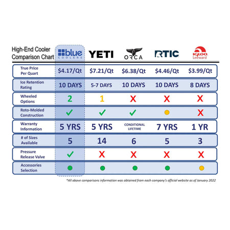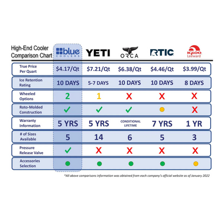 - Dry Basket & Divider ready design (sold separately by Blue Coolers)