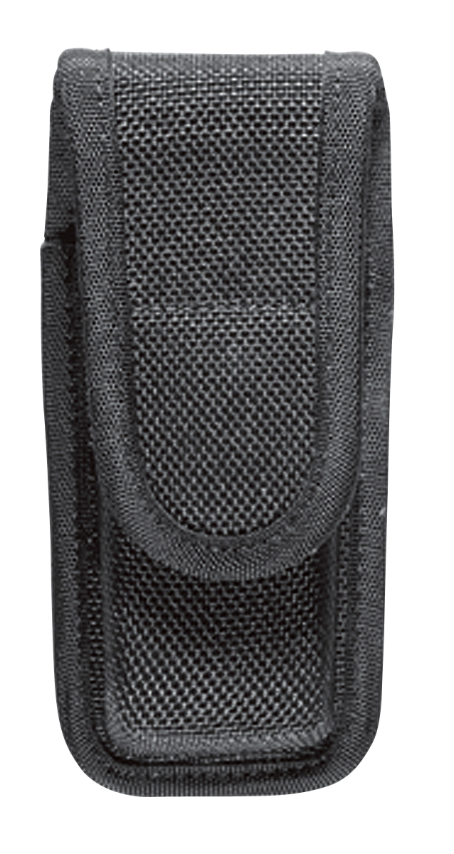 The Model 7303 Single Magazine/Knife Pouch features vertical carry with a hook and loop closure to secure the item. It is custom molded and contoured for long lasting shape and precise fit. Featuring AccuMold trilaminate construction with ballistic weave exterior and Coptex lining, the pouch cavity expands both front and rear for a trim look. The dual web belt loop design accommodates both 2" (50mm) and 2. 25" (58mm) belts.