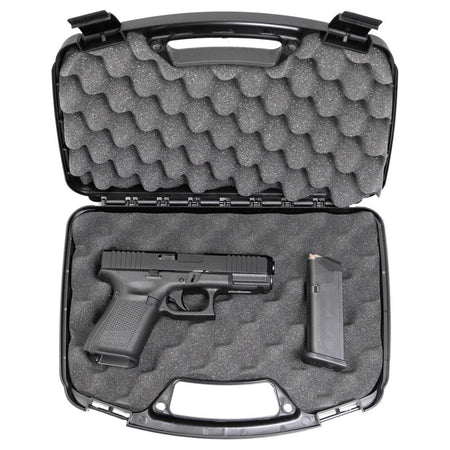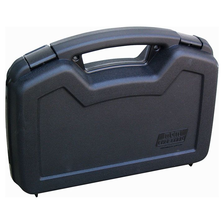 The case-gard single handgun case features durable construction, affordable, stylish foam-lined cases with reliable latches and large comfortable handles. Made of rugged polypropylene, they are scratch resistant. There is room in the case for a trigger lock (not included) and it is pad lockable. For automatics and scoped revolvers with barrels measuring up to 6".