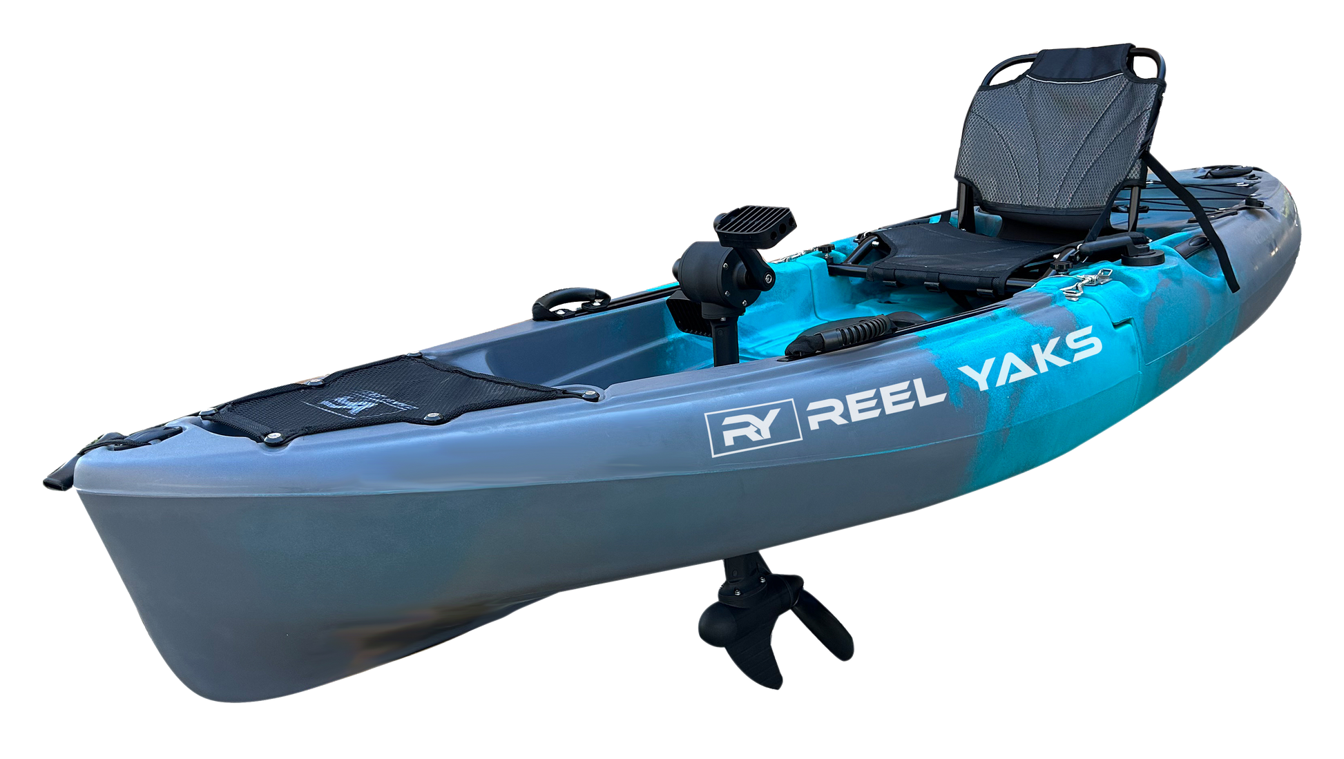 The Reel Yaks 9.5ft Raptor propeller drive kayak is the ideal platform to make your fishing sessions more enjoyable. It has a practical pedal drive system that allows you to accelerate through water very smoothly and quietly, without scaring the fish. Also, it is equipped with all the equipment you need for fishing, such as track rails for mounting fishing rods, swivel fishing rod holders, bait box holders, a storage hatch for extra gear, and a bottle holder. It has a hull weight of only 62lbs, each side is 31lbs and side carrying handles for more convenience and easy carrying. Also, it comes with a comfortable cushioned chair that makes those long hours of fishing more comfortable and a deep-blade rudder system to provide assistance when paddling conditions change. Durable and solid, the kayak provides increased stability, even when standing, which makes it a must-have for every fishing enthusiast