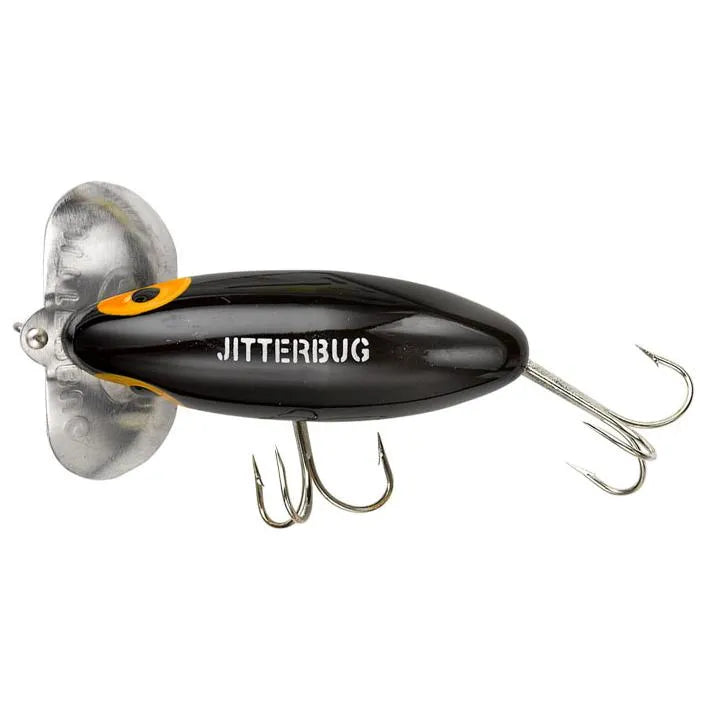 The Arbogast Jitterbug is the most respected topwater lure, provoking heart-stopping strikes day or night. The Jitterbug's double cupped lip, placed at precisely the correct angle, produces the loud, rhythmic, surface-busting sound that is proven to be irresistible to bass, pike and other gamefish. The addition of the Clicker provides even more attraction.