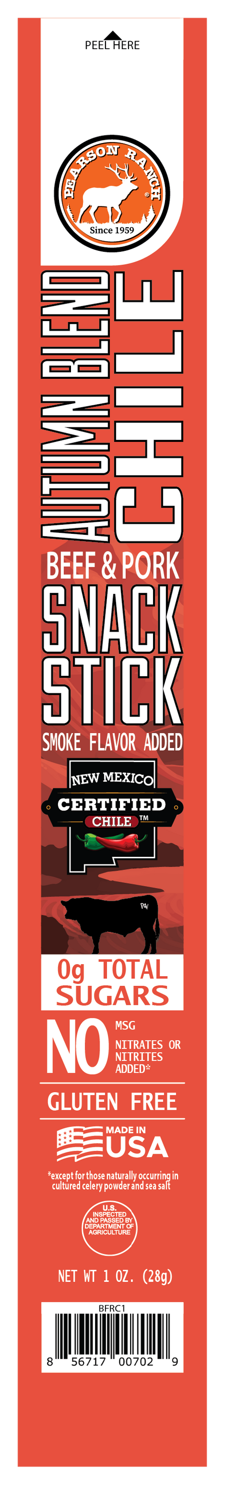 Our new Autumn Blend Chile Beef & Pork Snack Stick is made with authentic New Mexico Green & Red Chilies and full of mouthwatering flavor and spice. (1 oz)
