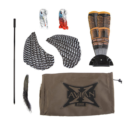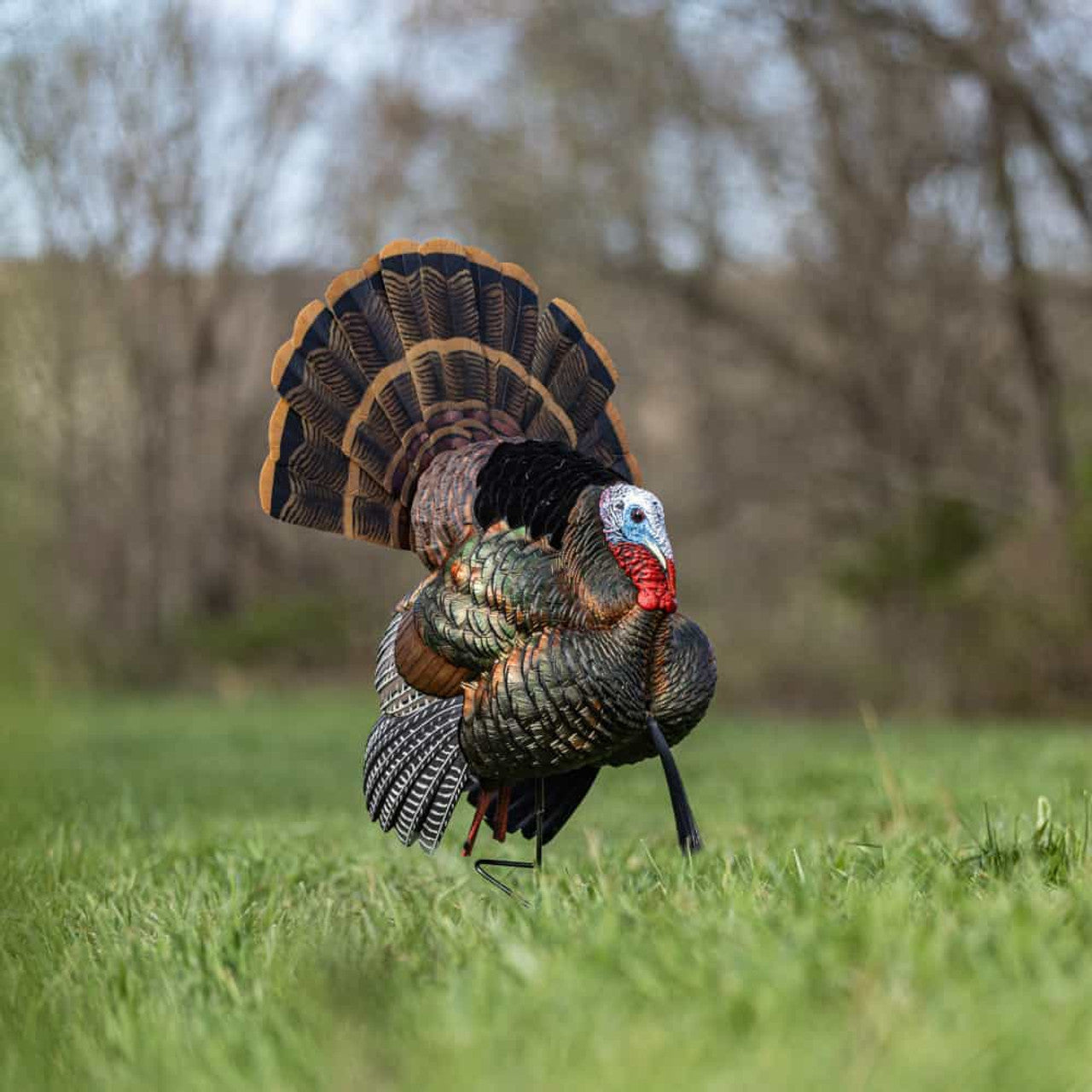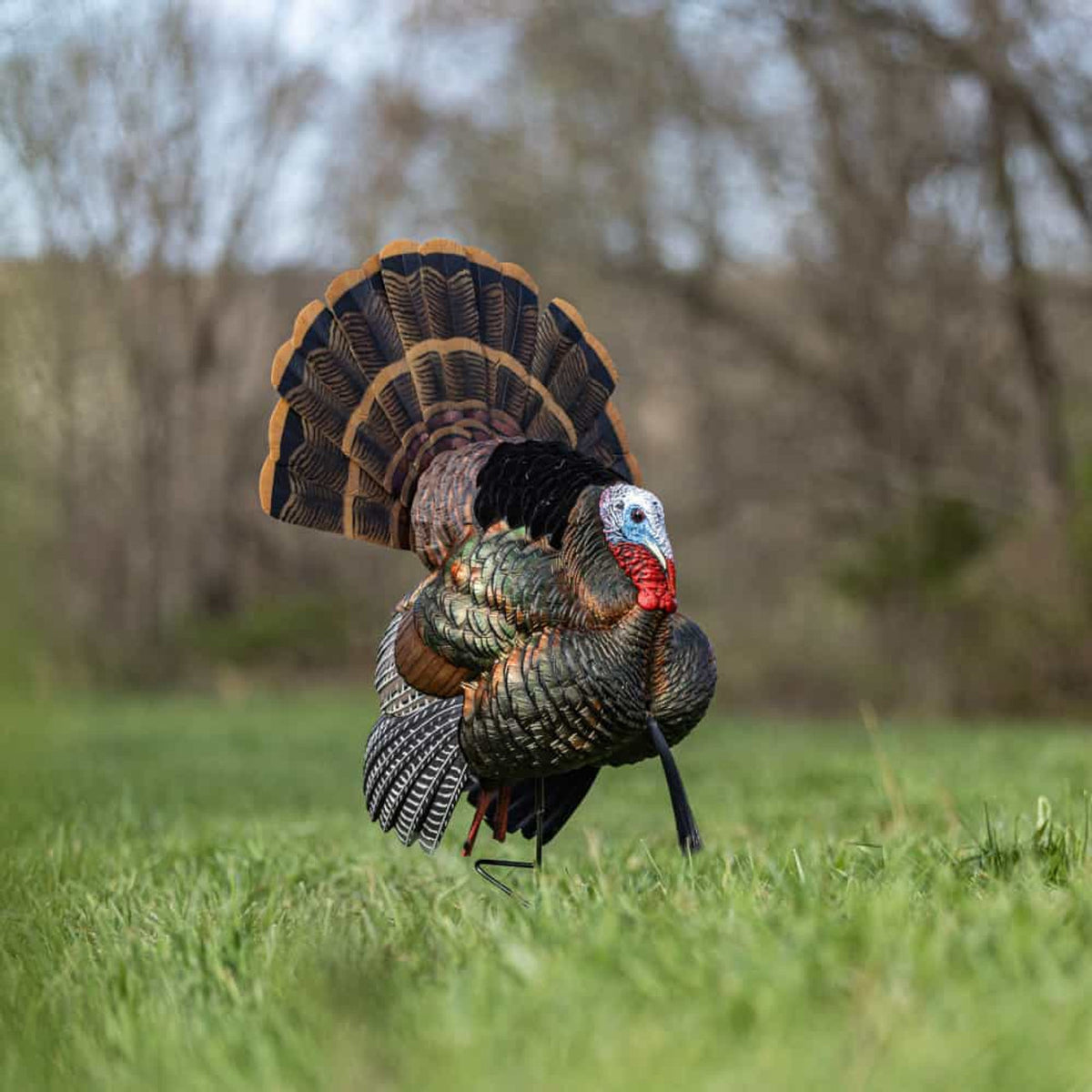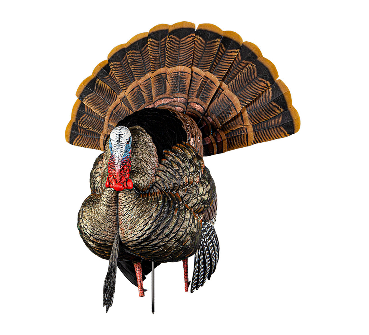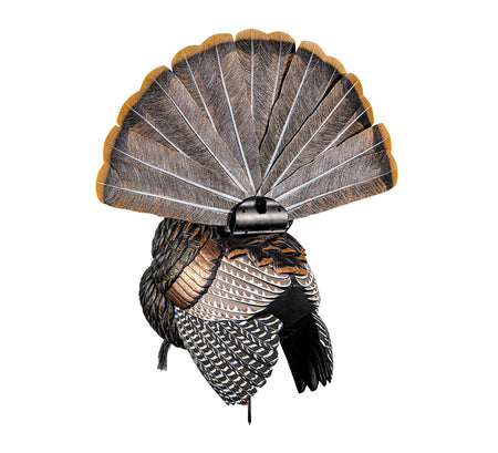 The HDR Strutter features interchangeable heads with distinct aggression levels and an adjustable tail fan. These adjustable components allow the HDR Strutter to mimic a mature Tom or a Youthful Jake for a variety of setups. Flocked feathers, realistic legs, and a realistic paint scheme all combine for a life-like build. The strutting wing pieces and fan remove easily for real, feathered substitutions. A build 15% smaller than real turkeys and removable wings combined with the included carry bag, make for easy transport.