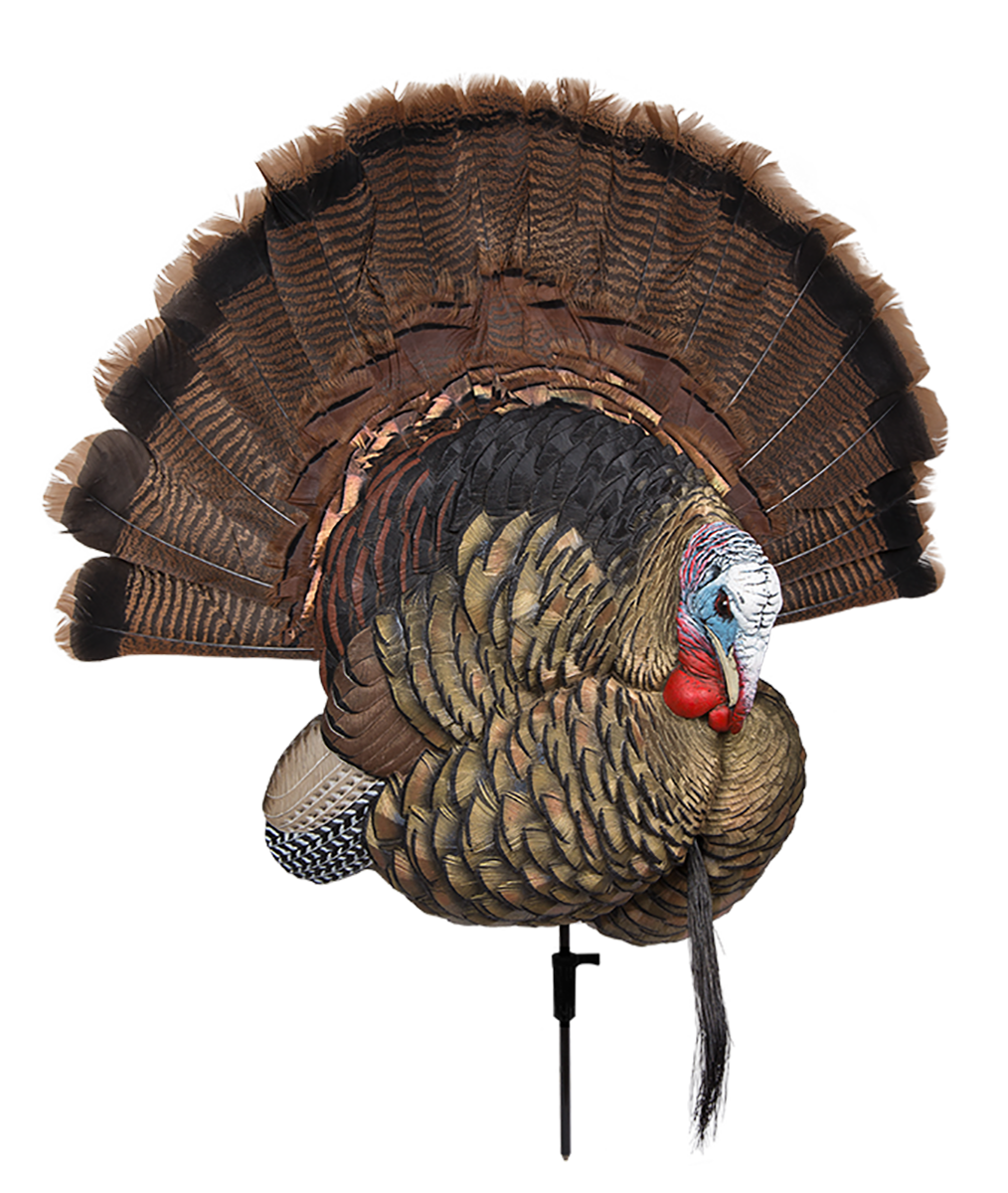 Showpiece for tail fan and beard.The one-piece design easily holds a dried tail fan and beard surrounded by detailed carvings and ultra-realistic paint.It's a great way for turkey hunters to relive memories over and over again.The trophy tom also includes a mounting stake and handle to double as a 2d strutting-style decoy in the field.Heavy-duty clip easily holds tail fan.Includes instructions on tail fan prep.Doubles as 2d decoy