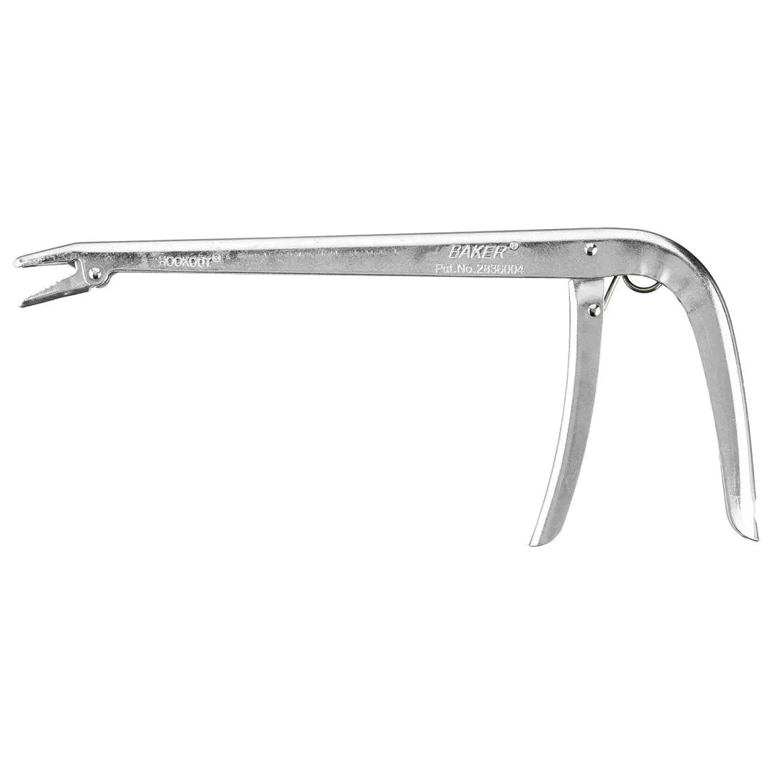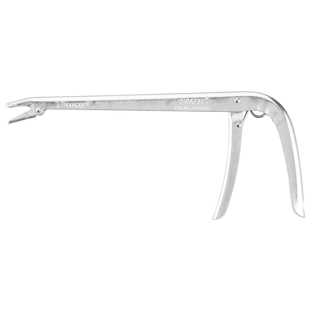 The Baker Original Hookout is built to safely remove hooks, artificial lures, and flies. Incredibly easy to operate, squeeze the spring-powered trigger, grip the lure with the non-slip jaws, twist, and extract. Engineered with a right-angle design, the Baker Original Hookout provides a clear line-of-sight when removing deeply swallowed hooks.