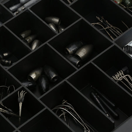 Introducing the Evolution Fishing Ballistix Terminal Tackle Tray, the ultimate solution for organizing your terminal tackle. Designed with meticulous attention to detail, this Patent-Pending tackle tray features a specifically measured layout to uniquely organize various hook and weight sizes in the different sections of the tray. Say goodbye to the frustration of misplaced hooks and weights, as each compartment is fixed in place. The innovative lid is equipped with drop-down ridges that seamlessly close over the bottom layout, ensuring secure storage and eliminated hook migration.