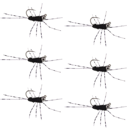 Barbless Pat's Barred Rubber Legs Tungsten Bead Jigged Black Euro Nymph - Set of 6 Flies Hook Size 6