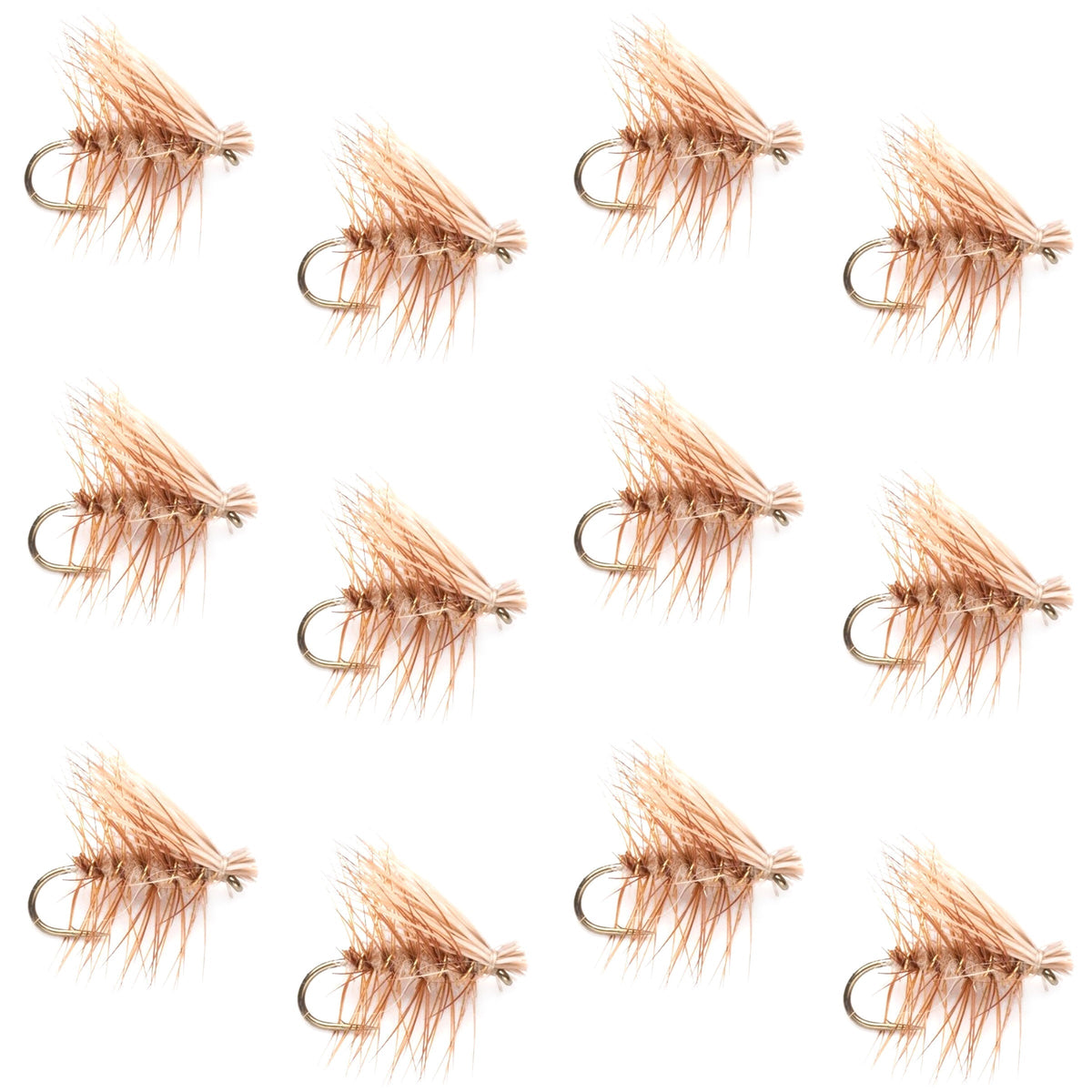 Barbless Tan Elk Hair Caddis Classic Trout Dry Flies 1 Dozen Flies Size 14