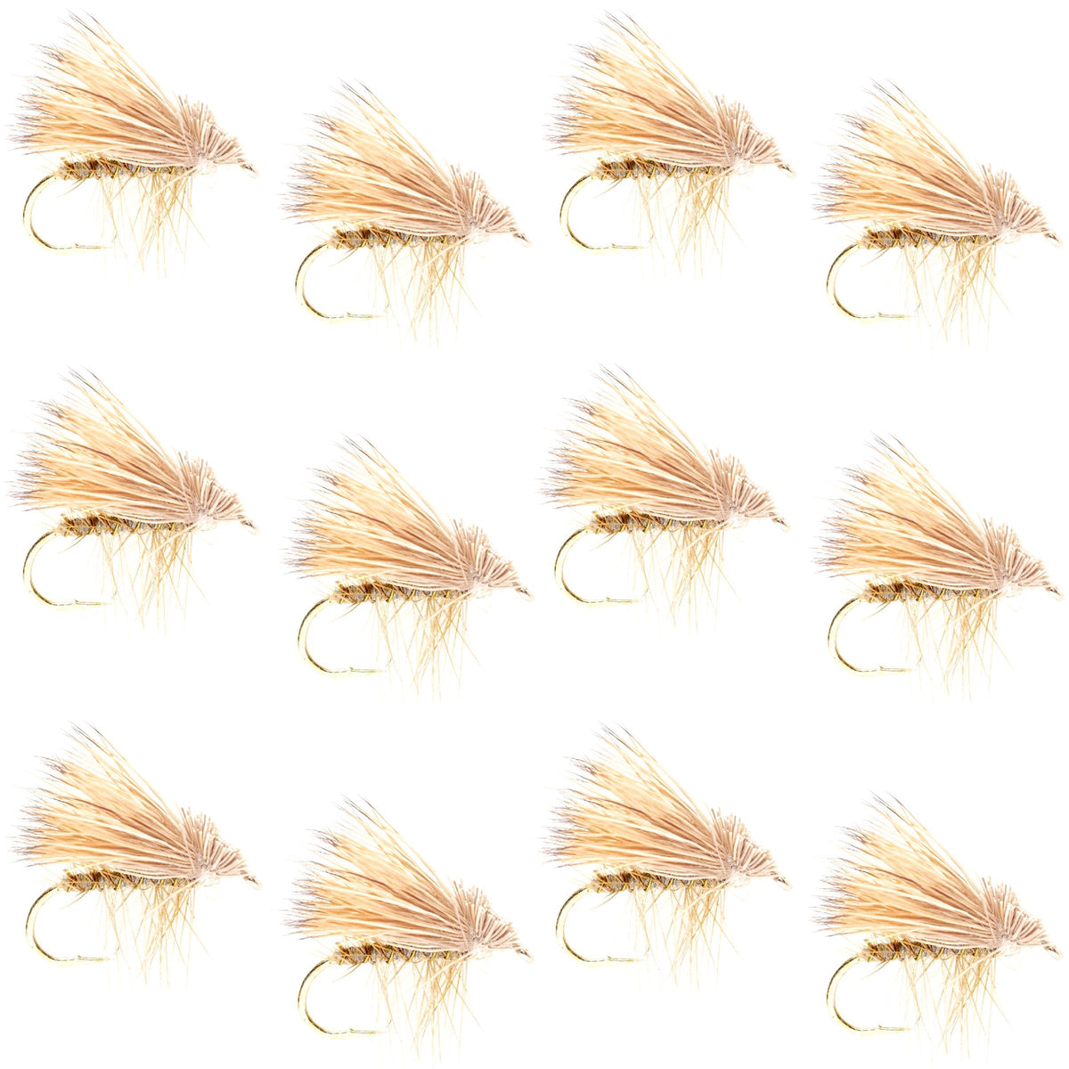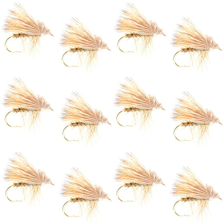 Barbless Yellow Elk Hair Caddis Classic Trout Dry Flies 1 Dozen Flies Size 12