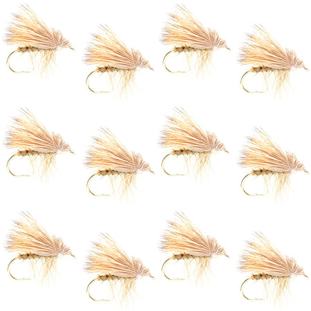 Barbless Yellow Elk Hair Caddis Classic Trout Dry Flies 1 Dozen Flies Size 14