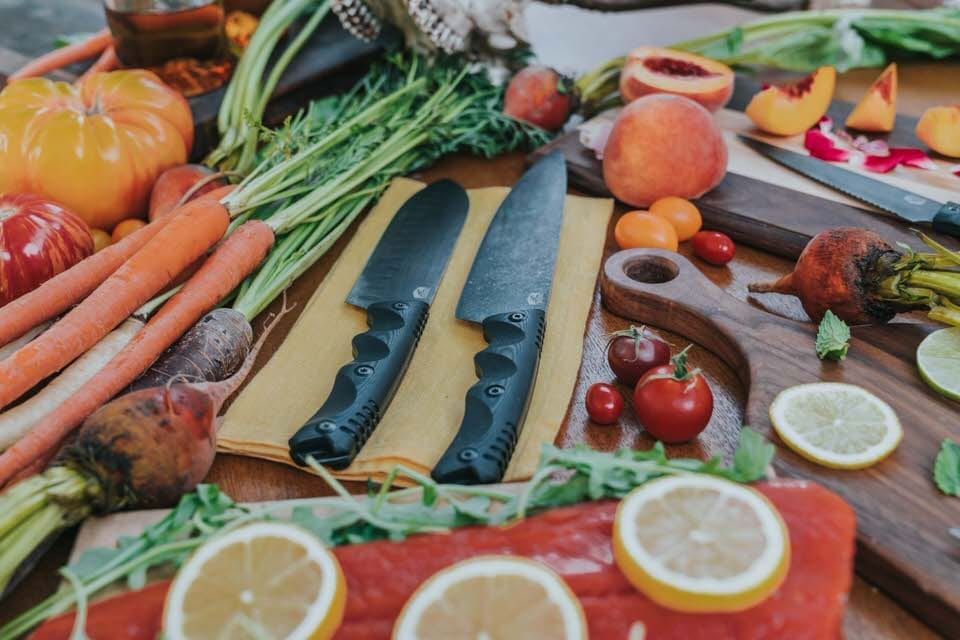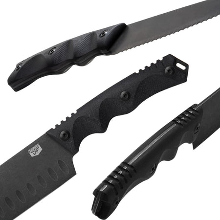 - Knives all feature a non-slip grip perfect for indoor and outdoor use