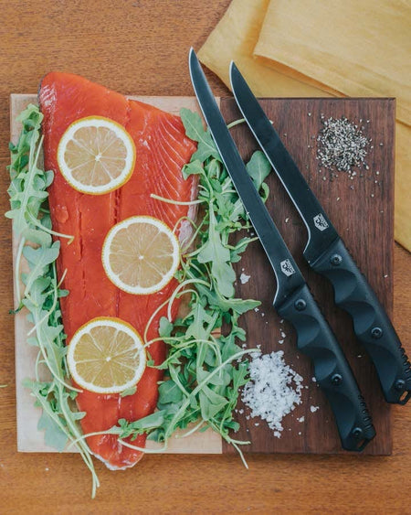 Are you prepared for your adventure? The Basecamp set has been designed as the most versatile rugged set of culinary knives crafted for indoor and outdoor use ready for work. These premium knives have been crafted for everyday use and will be a centerpiece of your next camping trip, backyard BBQ, or wherever you roam when slicing through primal cuts and filleting fresh fish, prepping delicate fruits and veggies in your kitchen, but built tough to withstand extreme conditions on your next outing.