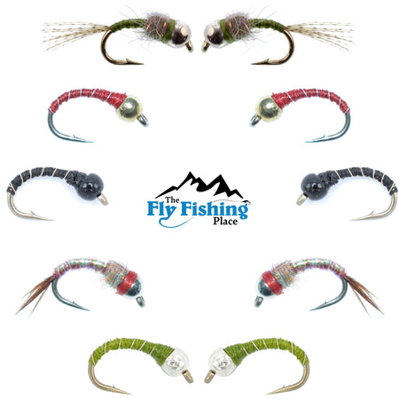 Basics Collection - Essential Bead Head Midge Nymph Assortment - 10 Wet Flies - 5 Patterns - Hook Sizes 14, 16, 18