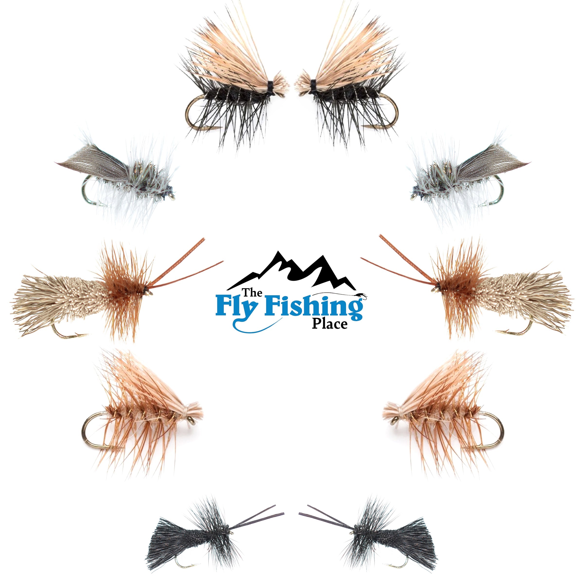 - 10 hand tied dry flies fishing fly assortment - Hook Sizes 12, 14 and 16, 18