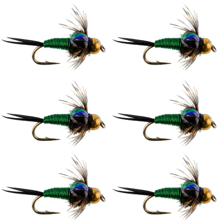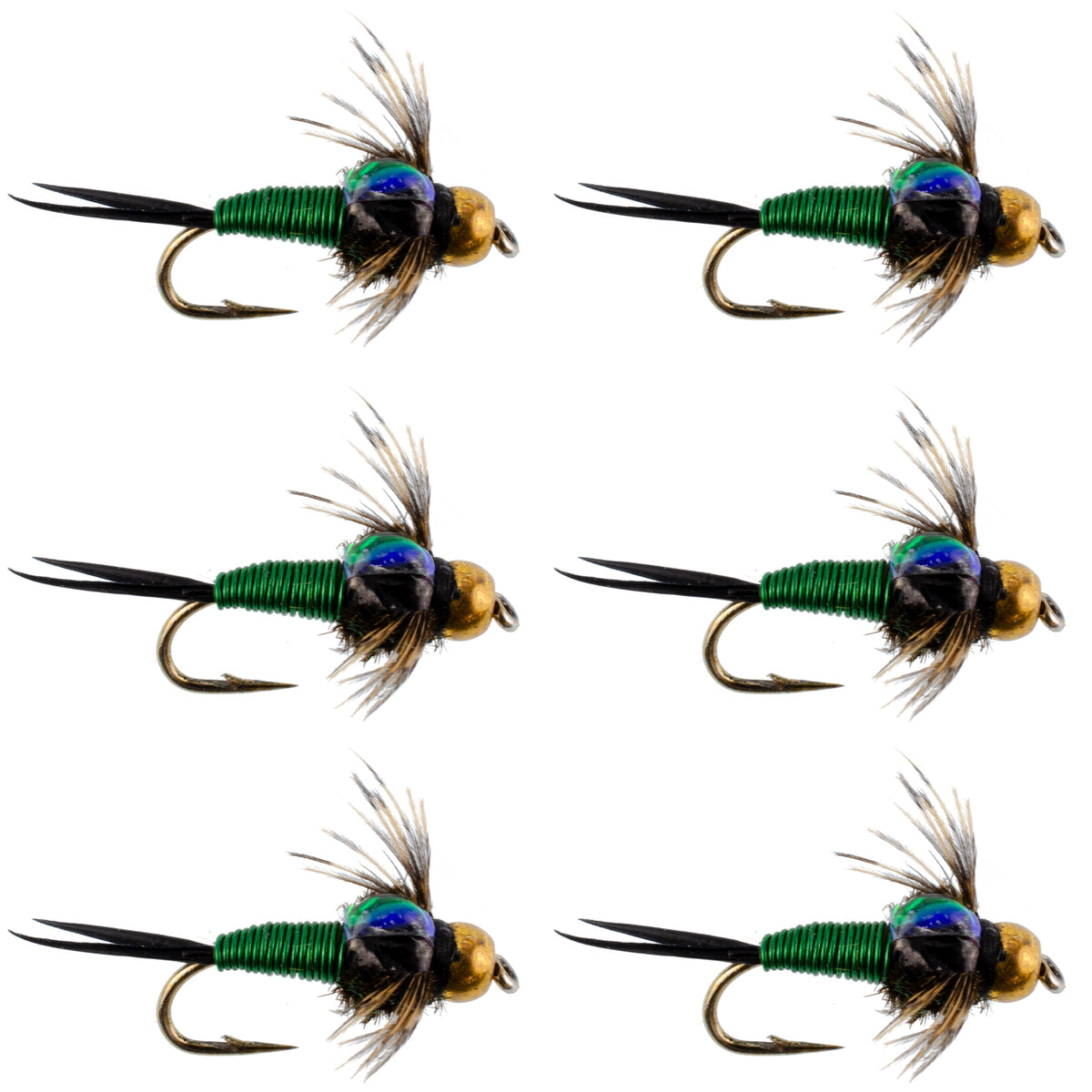 Bead Head Green Copper John Nymph Fly Fishing Flies - Set of 6 Flies Hook Size 16