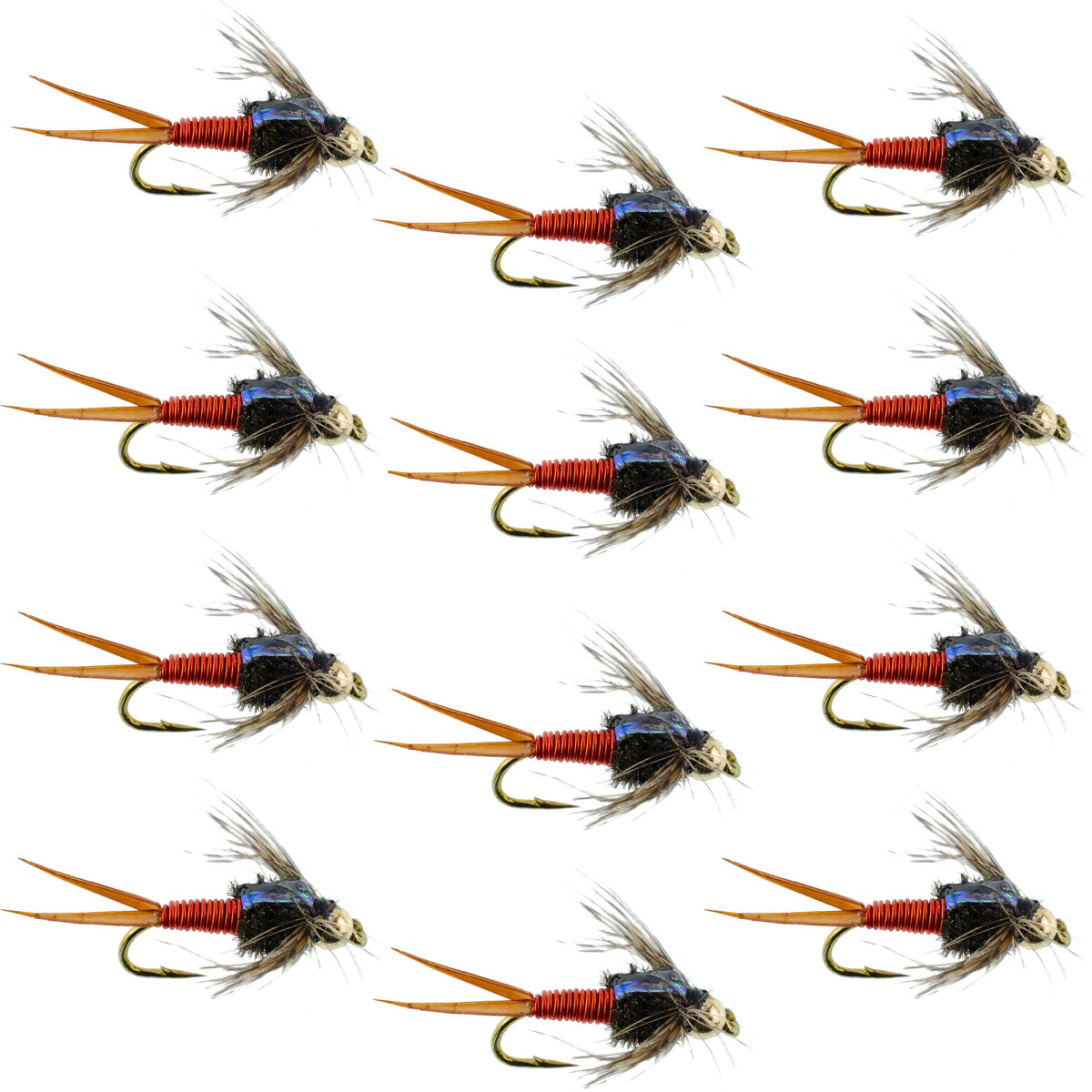 Included: 12 hand tied wet flies tied with premium hooks, wire and hackle. Hook Size 10
