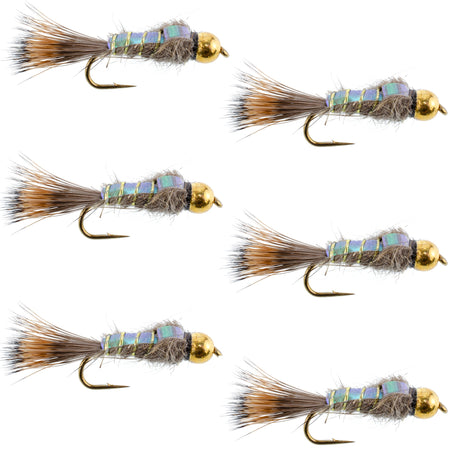 - Pack of 6 Gold Ribbed Hare's Ear Flash Back Fly Nymph Flies - Hook Size 16
