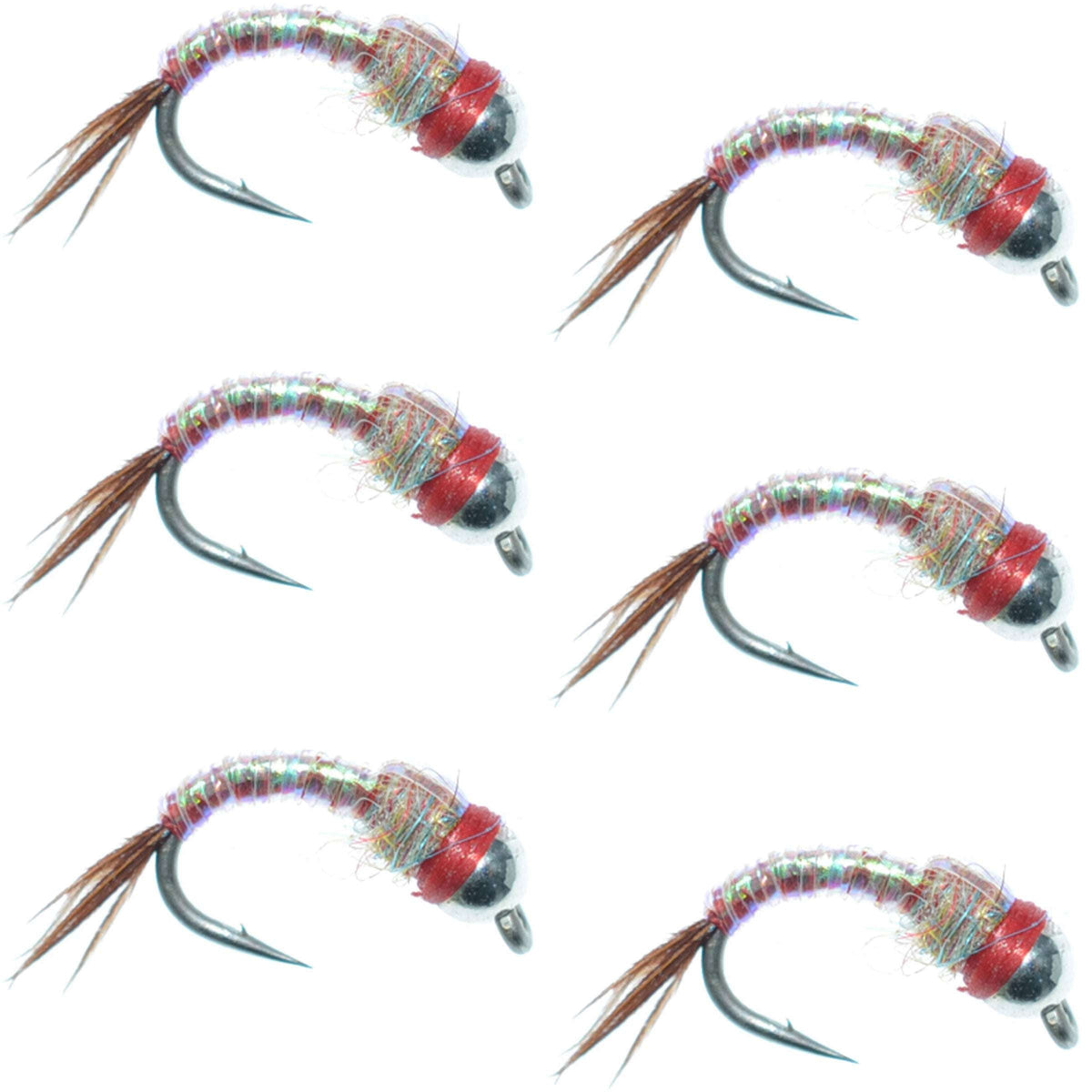 Bead Head Rainbow Warrior Nymph Fly Fishing Flies 6 Flies Hook Size 18