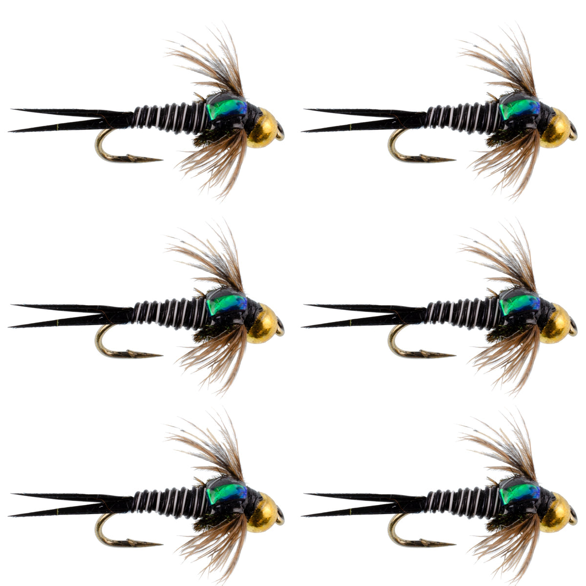 Bead Head Zebra Copper John Nymph Fly Fishing Flies - Set of 6 Flies Hook Size 12