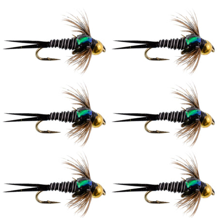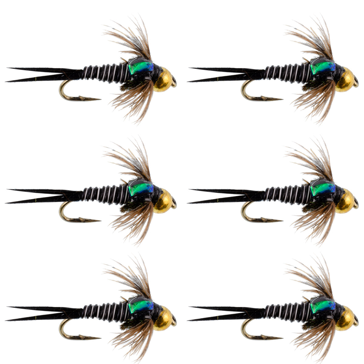 - Pack of 6 Zebra Copper John Nymph Flies - Hook Size 14