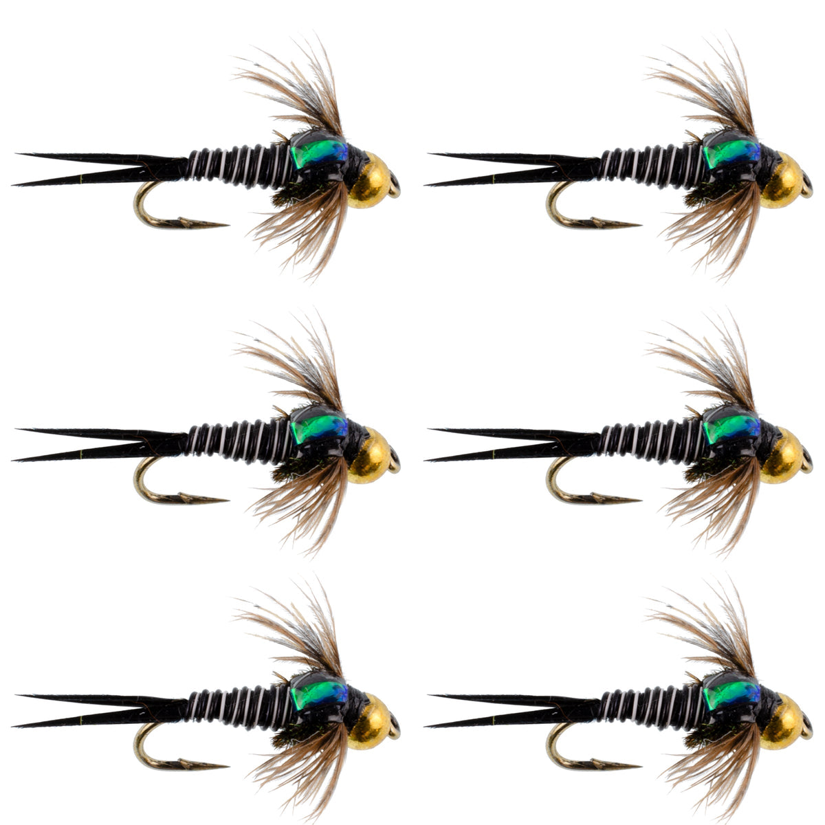 Bead Head Zebra Copper John Nymph Fly Fishing Flies - Set of 6 Flies Hook Size 16