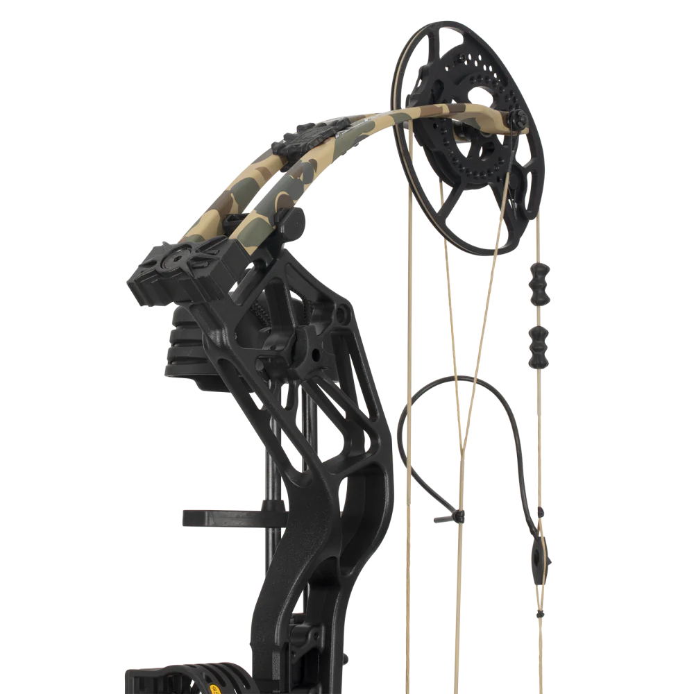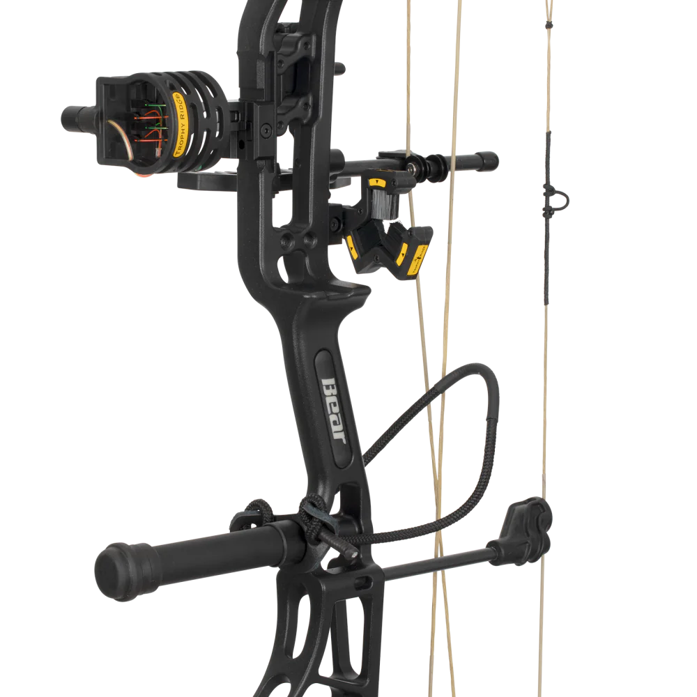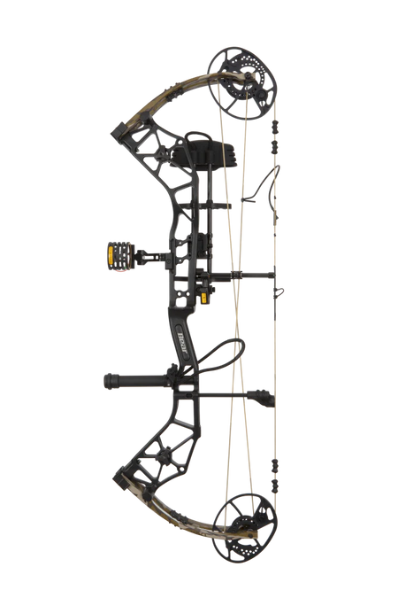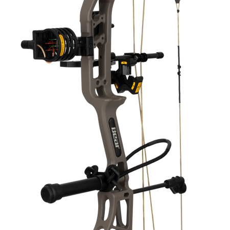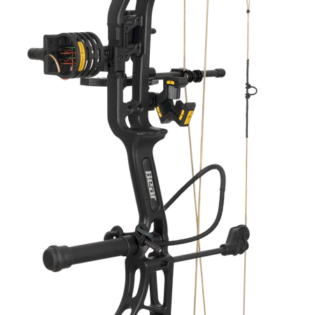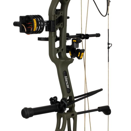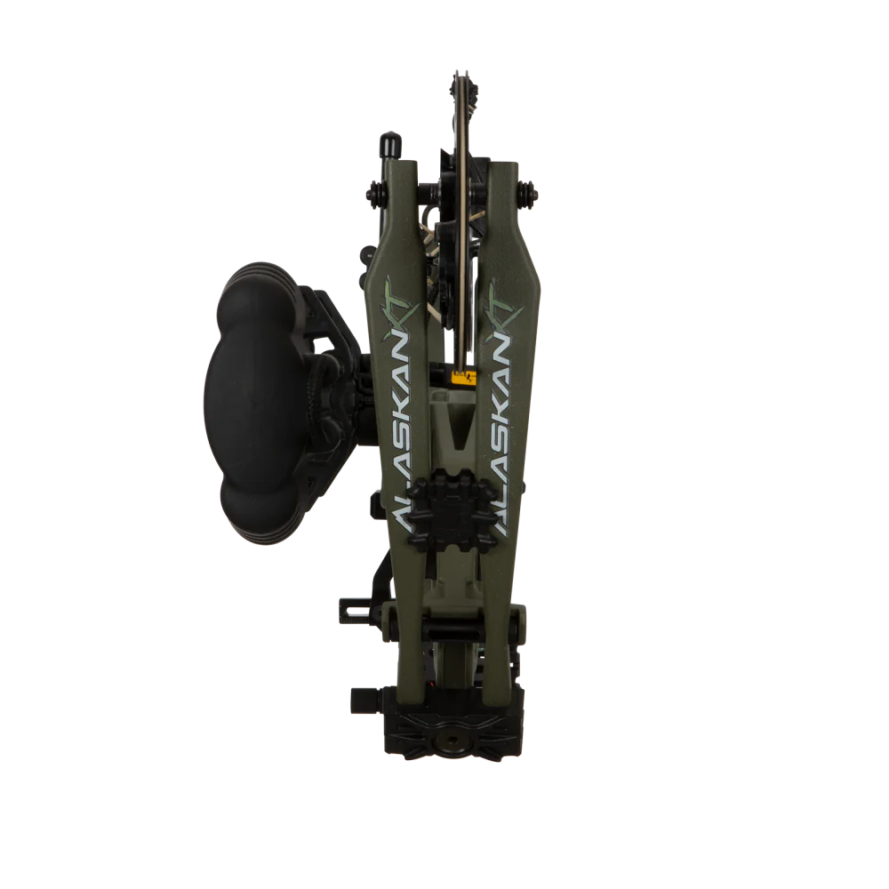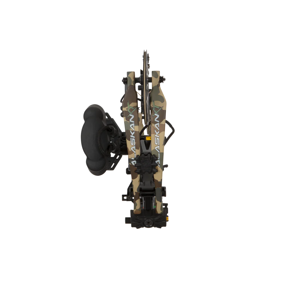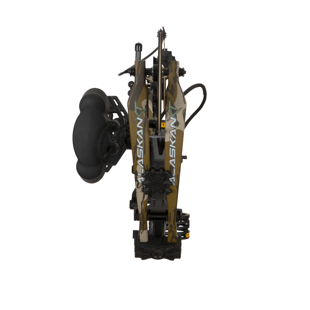 The Bear Alaskan XT RTH Package boasts a 33-inch axle-to-axle length and a 6.25-inch brace height, paired with adjustable draw length settings from 25-30 inches. It's crafted for speed, with a DHC-XR cam system propelling arrows up to 335 FPS, and an 80% let-off for ease of use. The package includes a Trophy Ridge integrated 4-pin sight, IMS Whisker Biscuit V, 5-Spot quiver, stabilizer, peep sight, and D-loop. With vibration-dampening technology and a smooth draw cycle, the Alaskan XT is ready for any challenge in the wild.