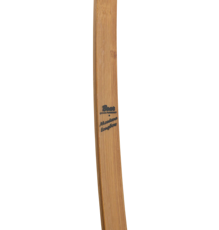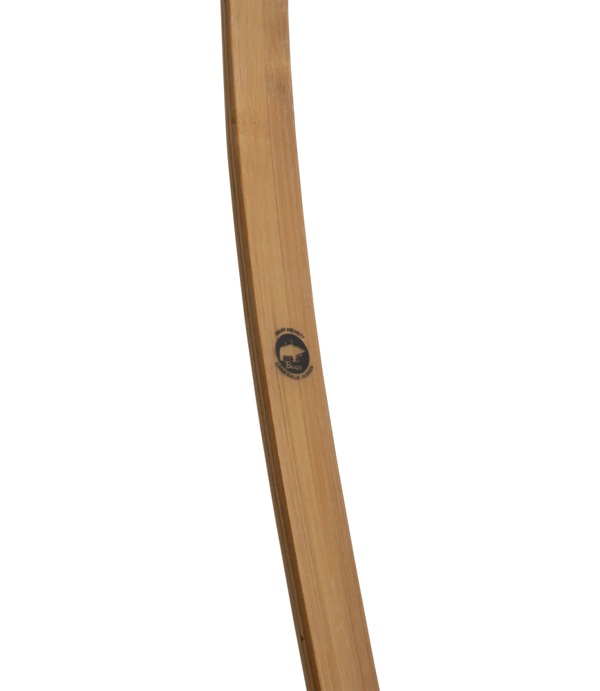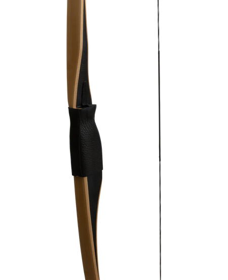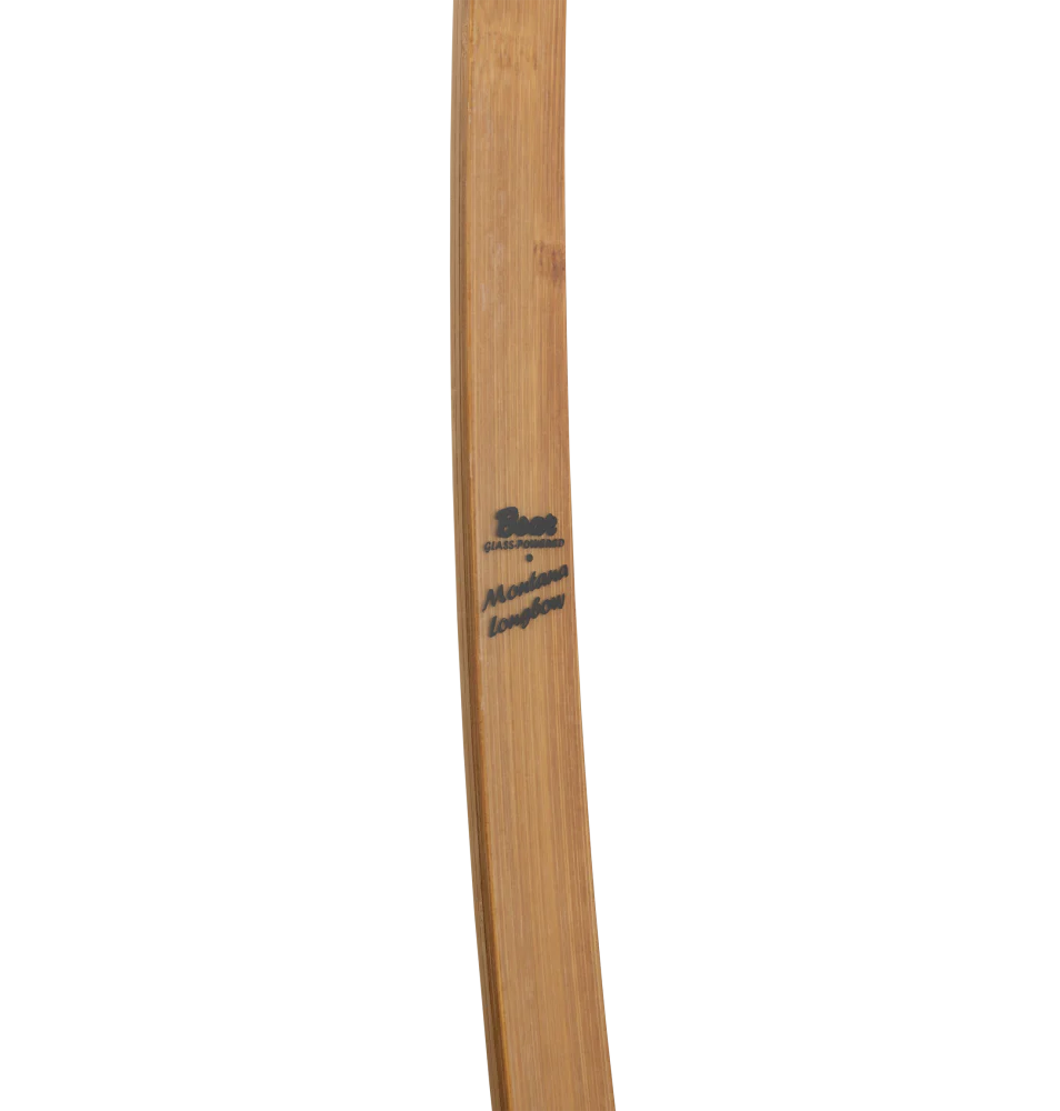 The Bear Montana longbow features a classic design with modern performance. This bow stands out with its flame bamboo and clear glass construction, a black phenolic riser, and slim, tapered limb laminations for a sleek, reflexed profile. Its superior craftsmanship is complemented by premium materials like a leather grip and Dynaflight 97 Flemish twist string, delivering durability and a smooth shooting experience.
