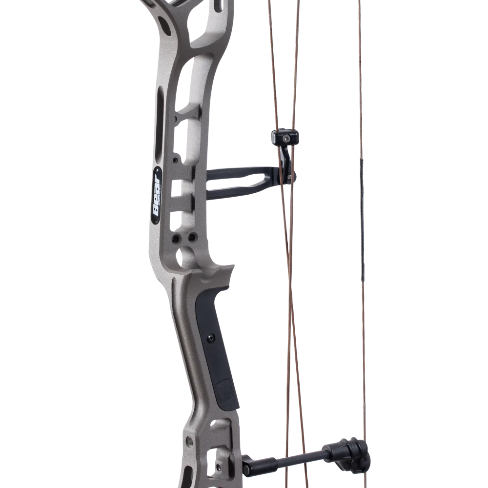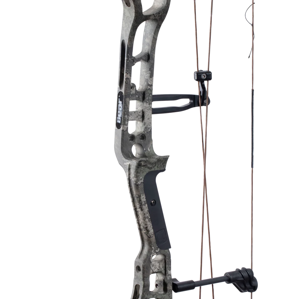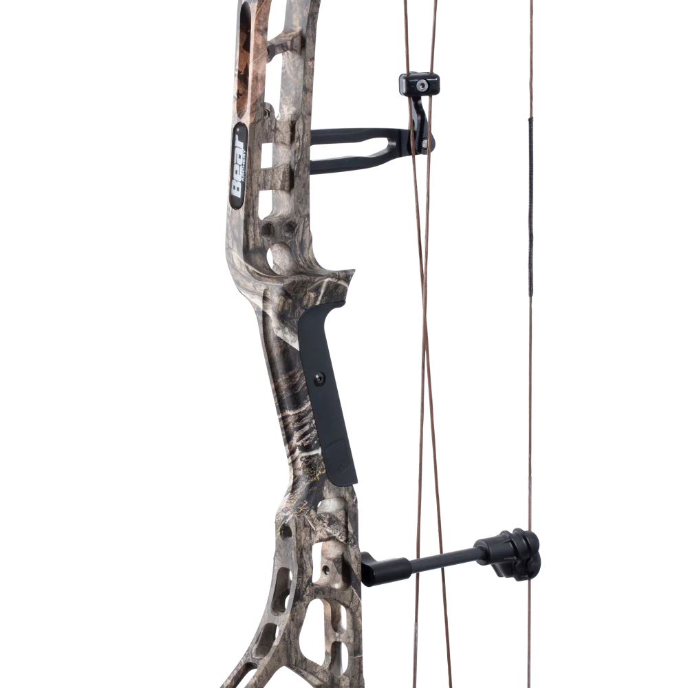 The Bear Surpass compound bow surpasses the usual expectations by offering advanced technology typically found in more expensive models. It ensures a virtually hand-shock-free experience through its strategically placed in-riser dampeners and KillerWave limb dampeners. Despite its stealthy profile, the Bear Surpass delivers a powerful performance while maintaining a comfortable 80% let off, enabling you to take on prey with precision and ease. Its 32-inch axle-to-axle length paired with a 6.25" brace height makes the Surpass exceptionally maneuverable, whether you're navigating mountainous terrain or the dense hardwoods.