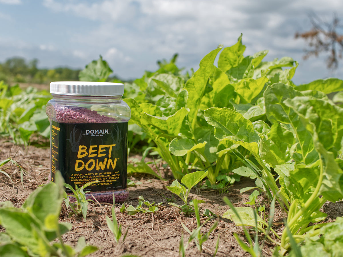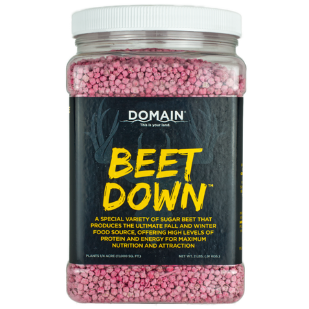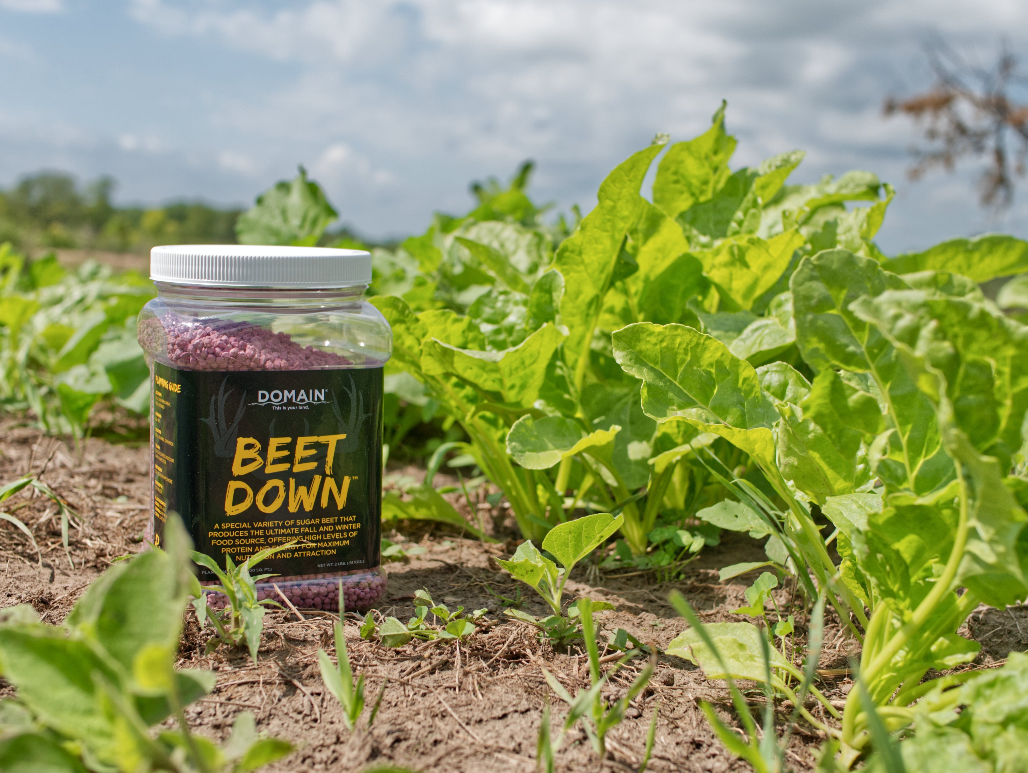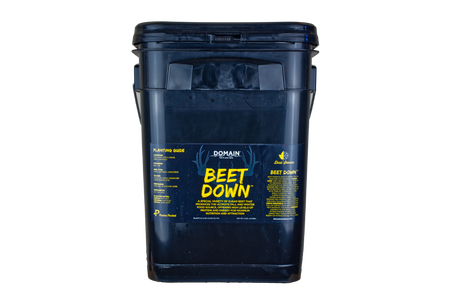BEET DOWN IS BEST PLANTED ON ITS OWN AND CAN PROVIDE A HARDY CROP THAT CAN ADAPT TO A VARIETY OF GROWING CONDITIONS. PLANTED IN THE SPRING OR EARLY SUMMER, BEET DOWN WILL MATURE IN 90 TO 100 DAYS AND CAN PROVIDE 10-15 TONS OF FORAGE PER ACRE (IN OPTIMAL GROWING CONDITIONS). WHILE IT DOESN’T HANDLE COMPETITION WELL, ONCE ESTABLISHED BEET DOWN WILL PROVIDE HIGH PROTEIN LEAFY GREENS FOR EARLY SEASON ATTRACTION AND HIGHLY DIGESTIBLE TAP ROOTS PACKED WITH ENERGY FOR LATE SEASON. COLD WEATHER WILL HELP INCREASE THE SUGAR (ENERGY) CONTENT OF THE TAP ROOTS AND ATTRACTIVENESS TO DEER, BUT EXPECT BEET DOWN TO PROVIDE PLENTY OF ATTRACTION ALL FALL LONG. WHEN PLANTING BEET DOWN, MAKE SURE YOUR PH IS IN THE DESIRED RANGE (6.2-7.0) AND DO YOUR BEST TO CREATE A GOOD SEED BED, VOID OF ANY COMPETITION OR DEBRIS. WE UTILIZE A SPECIAL COATING MATERIAL ON ALL BEET DOWN SEEDS TO HELP IMPROVE GERMINATION AND YIELD…WHICH ALLOW YOU TO MAXIMIZE FORAGE PRODUCTION AND ATTRACTIVENESS TO DEER.