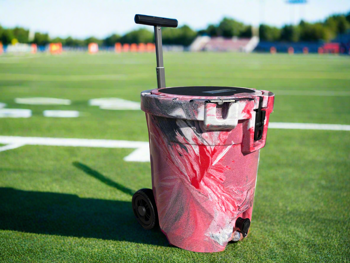 With the addition of the 3 stage telescoping handle and heavy-duty rubber wheel system, this is our most easily transported and versatile roto-molded cooler yet, making it battle-ready for the front lines of whatever you've got going on. We think the Berserkers would be proud.