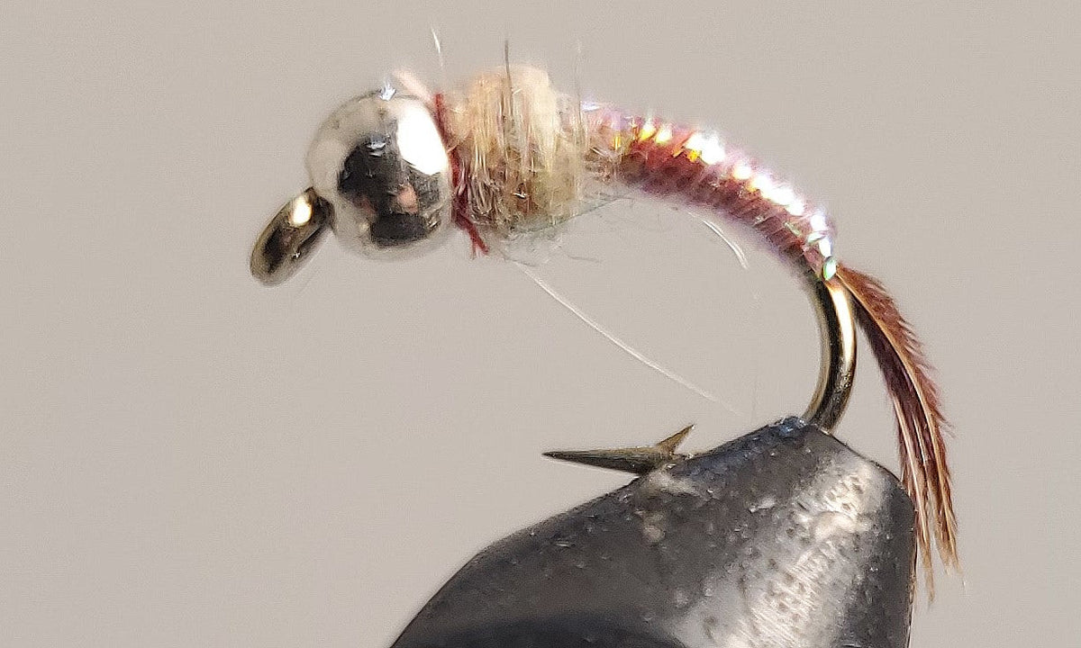 The Bead Head Rainbow Warrior attractor nymph pattern resembles various aquatic insects that make up much of most trout’s food. It’s very effective when fished in rivers, lakes, streams or anywhere trout live.