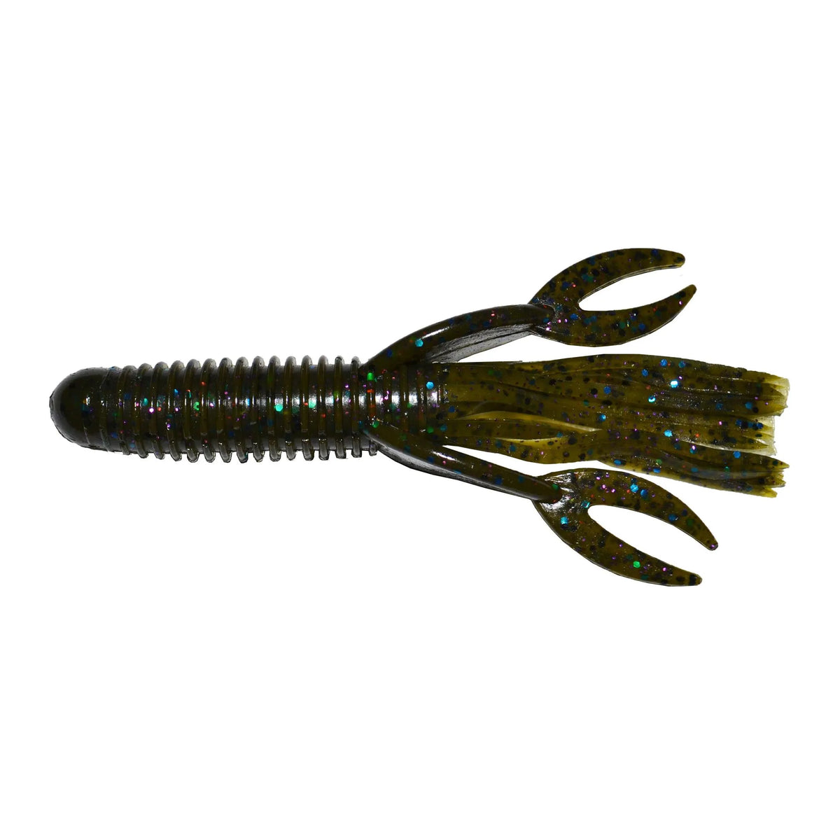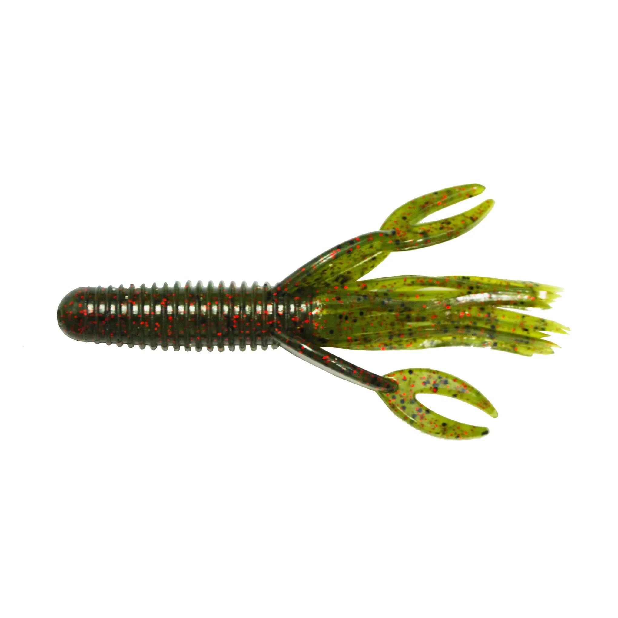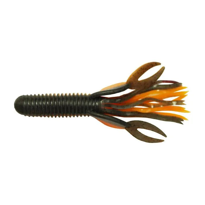 The Craw Tube has been a secret and a top performer of many top regional anglers across the country for over a decade. The design combines two classic shapes — a craw and a tube — and boasts some new features. The body is hollow like a tube, which allows you to insert a rattle, but features rings around the outside to add bulk and move water. The solid head makes rigging easy and makes each bait last longer. The tentacles provide a subtle action, and the claws make it look like a crawfish in a defensive position.