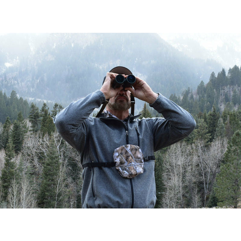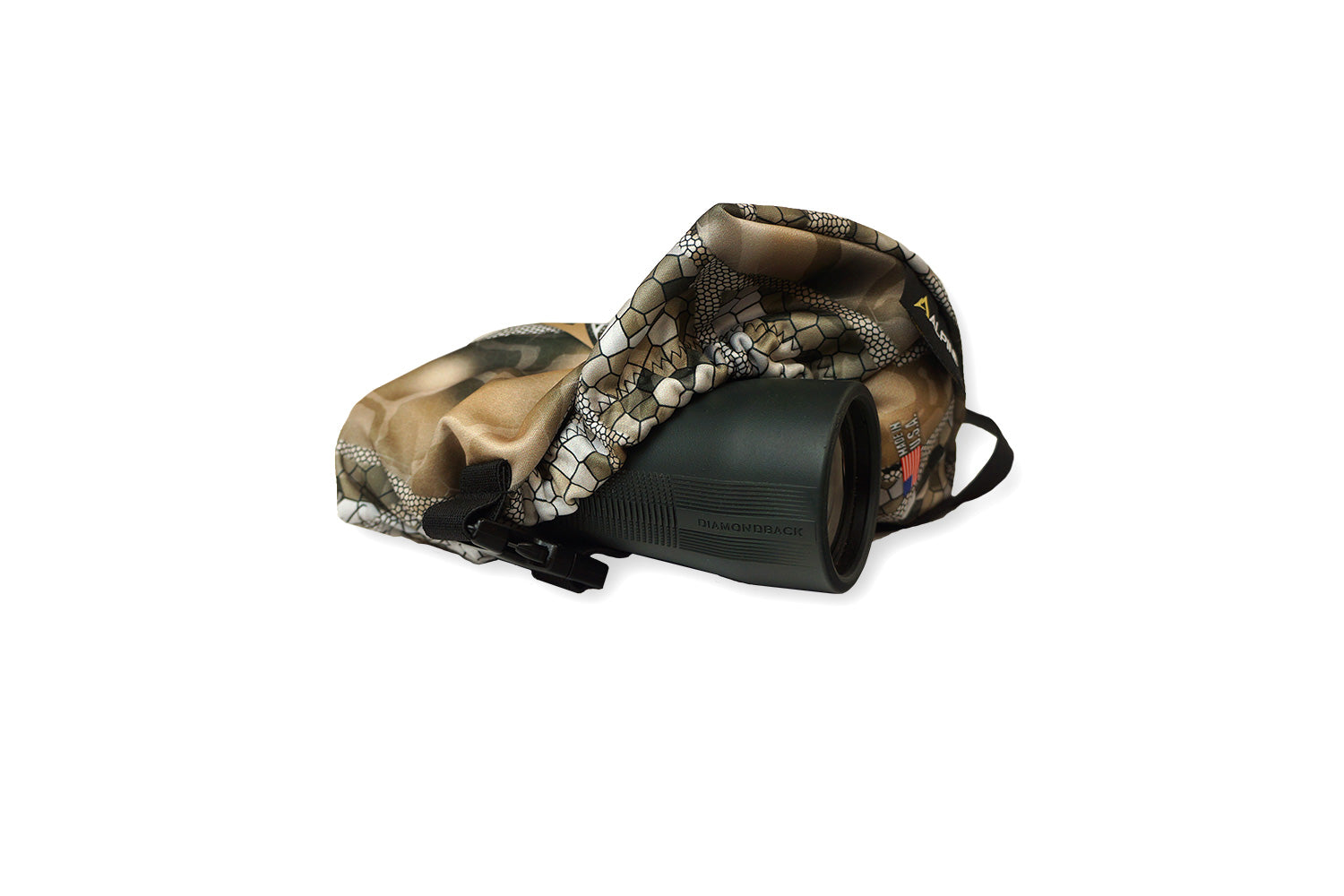The Alpine Bino Slicker NX is made with flexible weatherproof neoprene which fits most roof prism binoculars. This Binocular cover provides a great way to improve harnesses that come without weatherproof covers. The Bino slicker NX helps to eliminate the unwanted sagging and bouncing by securing the binoculars against the chest with a 3/4 " elastic belly band. This Ultralight weatherproof bino cover provides provides fast quiet access to your optics. Just flip off the cover to access your optics as it remains tethered around your chest. The NX cover features 2 built in lens cloths sewn to the cover. Upgrade your existing harness with the NX Bino Slicker.