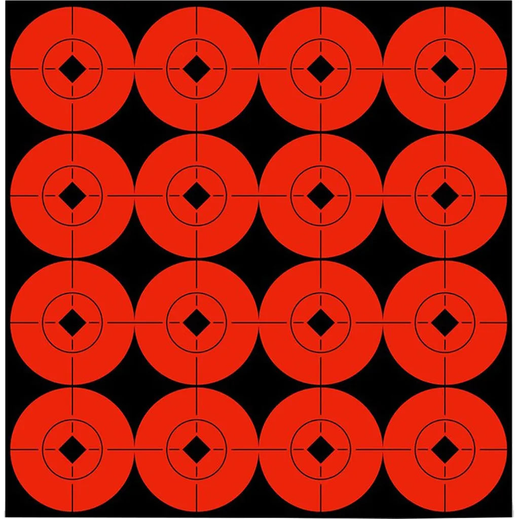 The Birchwood Casey Target Spots Targets help you perfect your accuracy from the comfort of your backyard. These targets are colored a bright fluorescent red for easy sighting from your rifle scope or red dot sight. Self-adhesive, the crosshair design of Birchwood Casey Red Target Spots make it easy to judge your own accuracy from afar. This particular collection of Birchwood Casey 1.5" Target Spots includes 96 precision 1.5" Birchwood Casey targets, allowing you to practice your close range shooting skills with a handgun or shotgun, or your precision long range technique with a rifle.