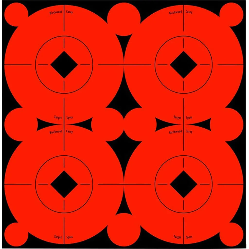 The Birchwood Casey Target Spots Targets help you perfect your accuracy from the comfort of your backyard. These targets are colored a bright fluorescent red for easy sighting from your rifle scope or red dot sight. Self-adhesive, the crosshair design of Birchwood Casey Red Target Spots make it easy to judge your own accuracy from afar. This particular collection of Birchwood Casey 3" Target Spots includes 40 precision 3" Birchwood Casey targets, allowing you to practice your close range shooting skills with a handgun or shotgun, or your precision long range technique with a rifle.