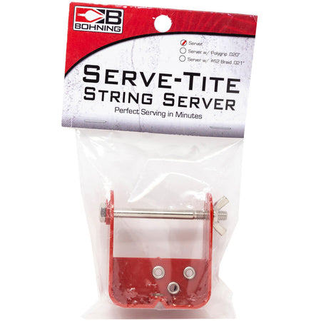The Bohning Serve-Tite Tool is a precision serving tool designed to provide adjustable tension and smooth thread flow for consistent and reliable servings. Compact and easy to use, it fits standard serving spools and allows for quick adjustments to maintain optimal thread control. Measuring 2.25" x 1" x 2.5", this tool is built for convenience and durability. Made in the USA, it ensures high-quality performance for archers looking for precision in their bowstring servings. Please note that thread is not included.
