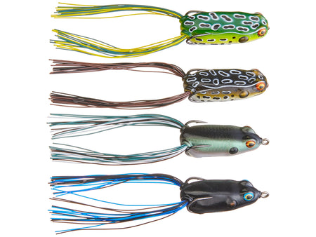 Designed for catching bass in heavy cover, open water, and everywhere in between, the Booyah Junior Pad Crasher Frog 4-Pack Kits introduce an extraordinary lineup of Pad Crasher Jr frog kits in all its hog-snatching variations! Providing anglers with $30 of frog-smashing value at a discounted price point, the Pad Crash Frog Kits are packaged inside a compact four-slot tacklebox ideal for slipping into a coat pocket or small tackle bag to hit the nearest body of water. Booyah Junior Pad Crasher Frog 4-Pack Kits are offered in four different variations whether it be Pad Crasher Jr's mixed with Poppin Pad Crasher Jr's or each option by itself in four of Booyah’s top-selling color patterns!