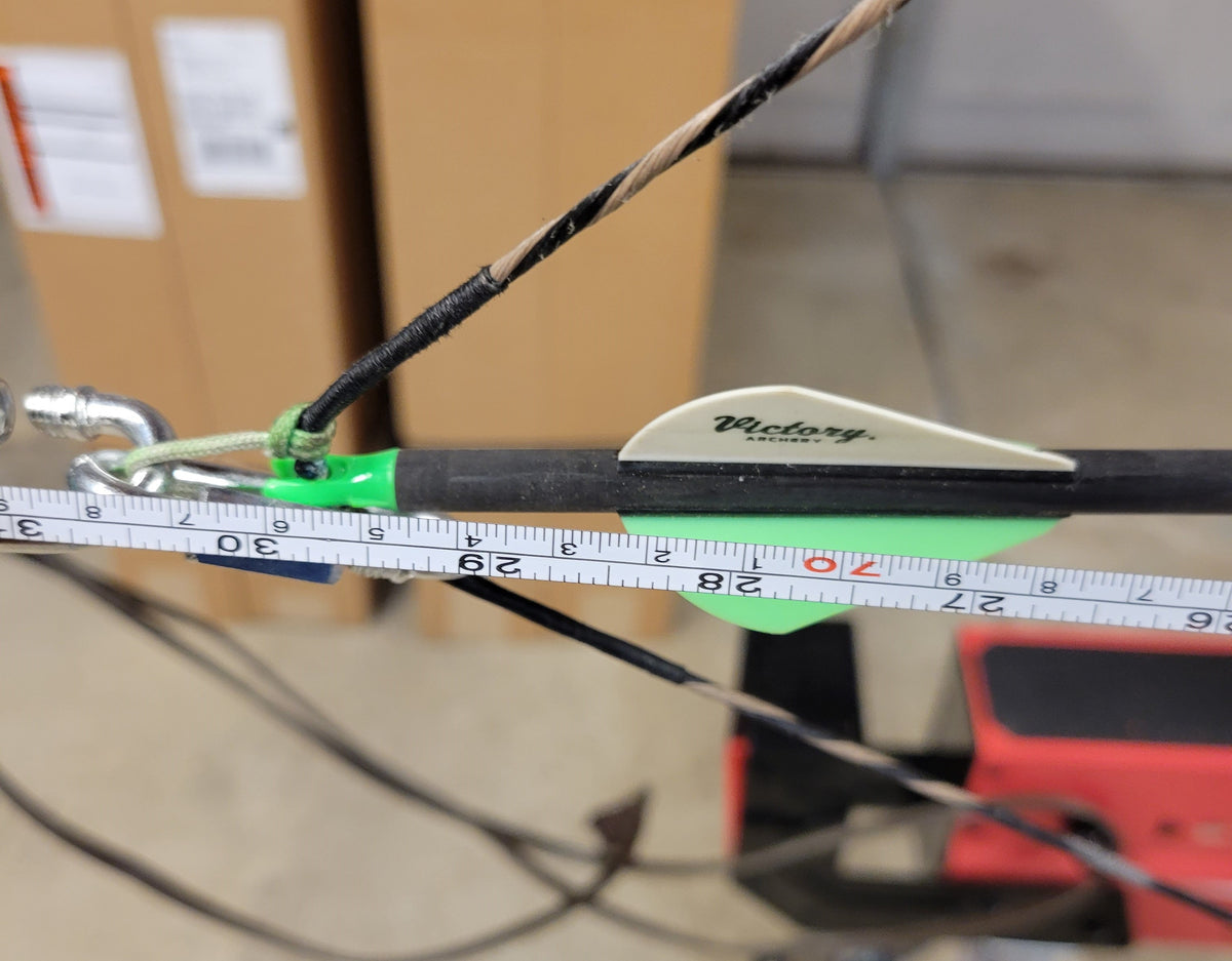 DIY bow tuning tool. Use it to check your bow timing, cam sync or draw length. Our set includes custom made draw length tape measure. Hook it up to the bow holder peg and measure. No math required.