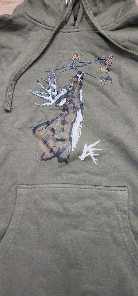 This Buck Scrape Hoody features a truly unique design, making it a great choice for the Hunting enthusiast. Made from a cotton-polyester blend fleece, this hoody is both comfy and warm, making it ideal for all-day wear. Plus, you can trust its high-quality construction which proudly displays a big buck making a scrape on the front.
