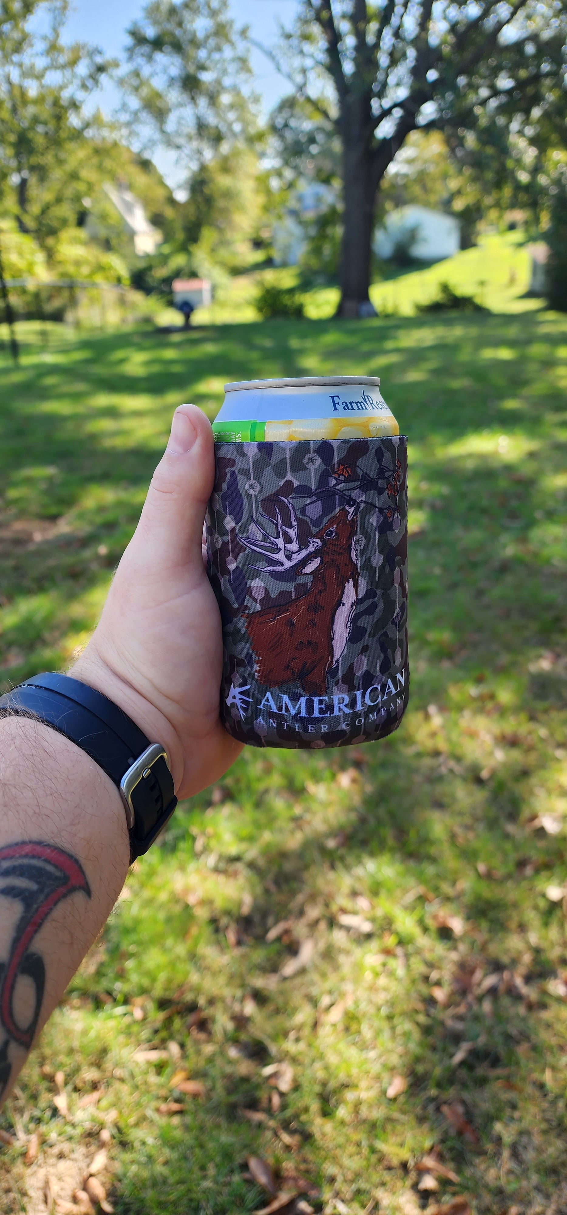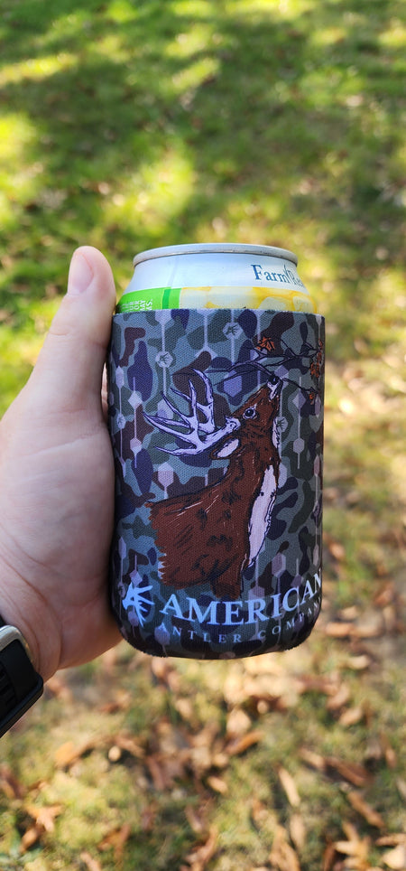 The Buck Scrape Koozie is a high quality neoprene holder featuring Vanish woodland camo pattern. Keep your 12 oz can cold for longer while making a statement with the unique Big Buck making a Scrape design. Ensure you stand out at deer camp with the Buck Scrape Koozie.