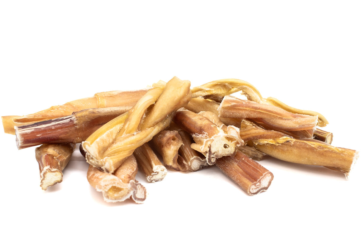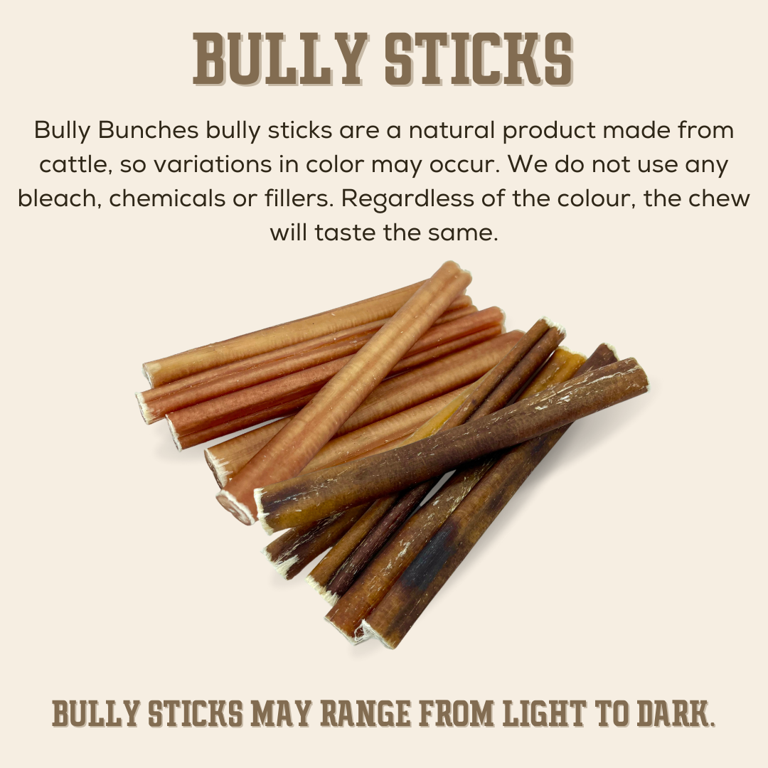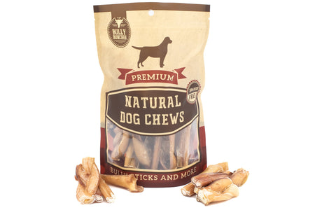 This Bargain Bag from Bully Bunches is made of bully stick lengths ranging from 1 to 7 inches of straight, braided, or curly bully sticks that didn't quite make the final product. Don’t let the moniker “bargain” fool you; these off-cuts are just as good as the full product, except for a great deal! These bargain bag bully stick cuts are perfect for small sized dogs. Like all high-quality treats from Bully Bunches, these bully sticks are ethically sourced and oven-baked to be one of the healthiest alternatives to rawhide. We hand-sort and inspect every stick to ensure you get the best consistency and value.