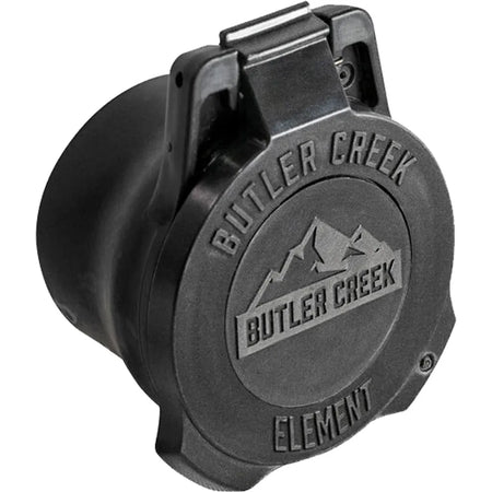 Butler Creek Element Scope Caps are made off rugged, durable materials with a multi-flex sleeve. An objective, printable dope disk provides wind and elevation information.